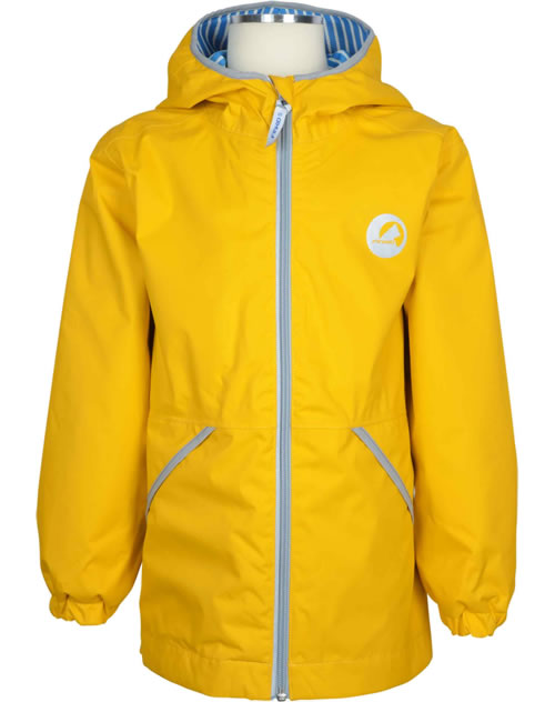 Super schöne sonnengelbe Jacke. Hält auch längerem Regen stand und trocknet im Sonnenschein binnen von 10 Minuten. Mein Sohn trägt sie im Naturkindergarten und wir sind sehr zufrieden.