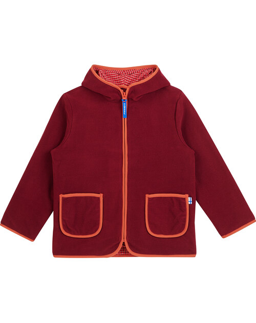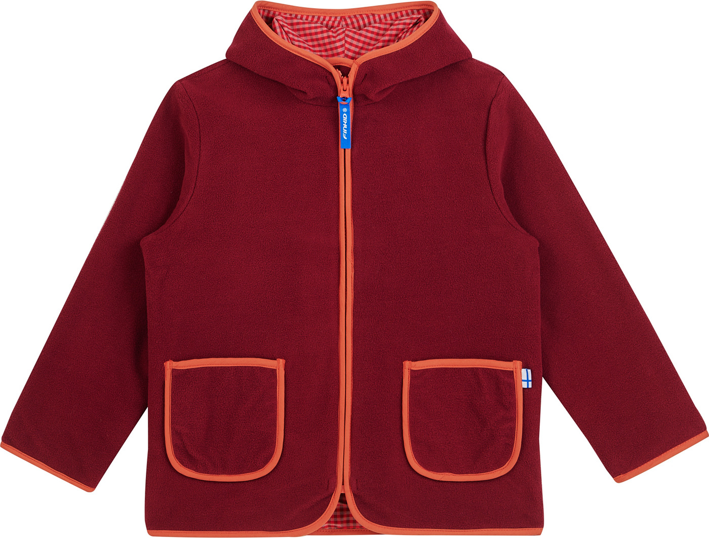 Mit seiner Zipfelkapuze DAS Urmodell der FINKID Kollektion. Die kuschelweiche Fleece-Jacke Tonttu besitzt kariertes Baumwollfutter und zwei aufgesetzte kleine Taschen. Die Jacke ist atmungsaktiv und wärmeisolierend. Sie kann solo getragen werden oder als zusätzlicher Wärmeschutz in eine Outdoor-Jacke eingezippt werden.