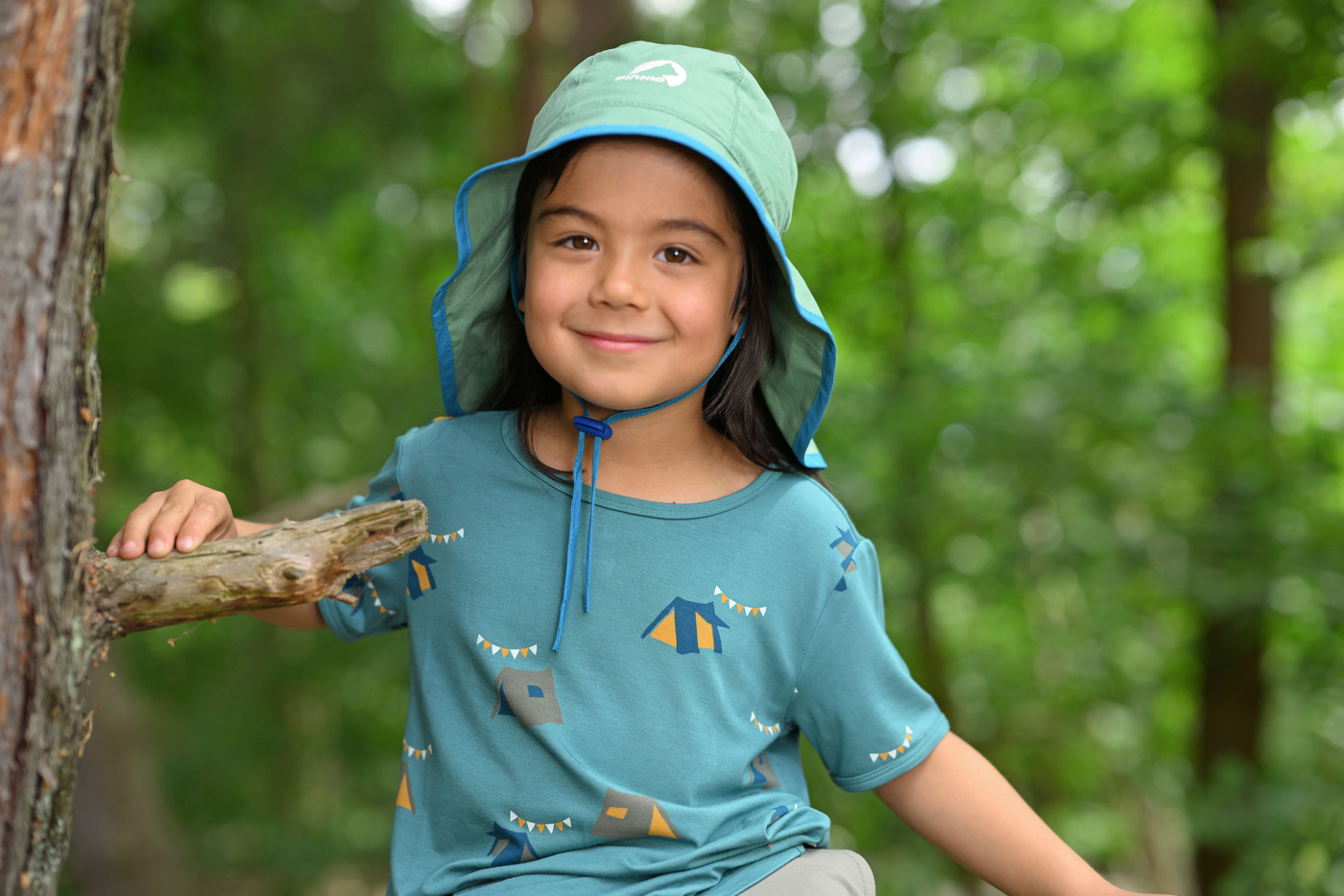 Der Sonnenhut 'Aurinko' mit Nackenschutz ist der ideale Begleiter für alle Frühlings- und Sommerabenteuer im Freien!