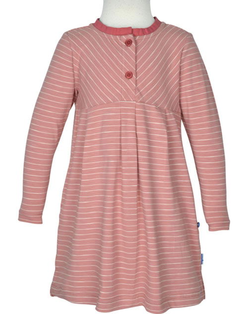 Gestreiftes Langarm-Kleid Pikku Paita aus ökologischer Baumwolle von FINKID für Mädchen. Die kontrastfarbene Paspel am Halsausschnitt und die Knopfleiste geben dem Kleid zusätzlich Pepp. In den zwei Eingrifftaschen ist Platz für kleine Schätze.