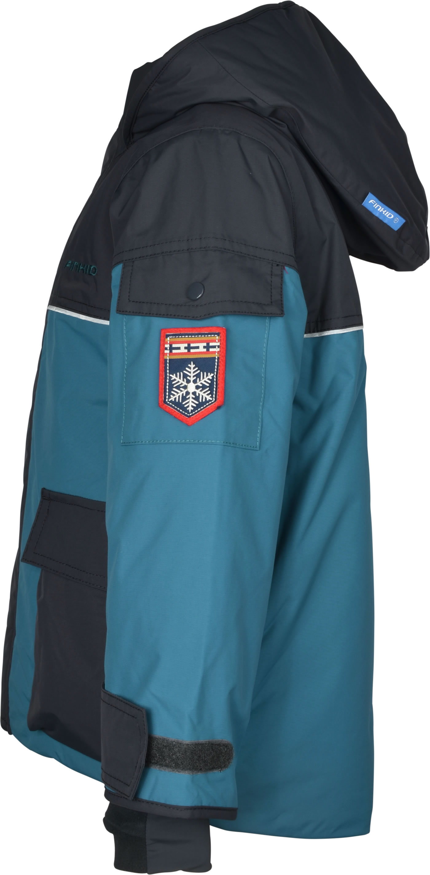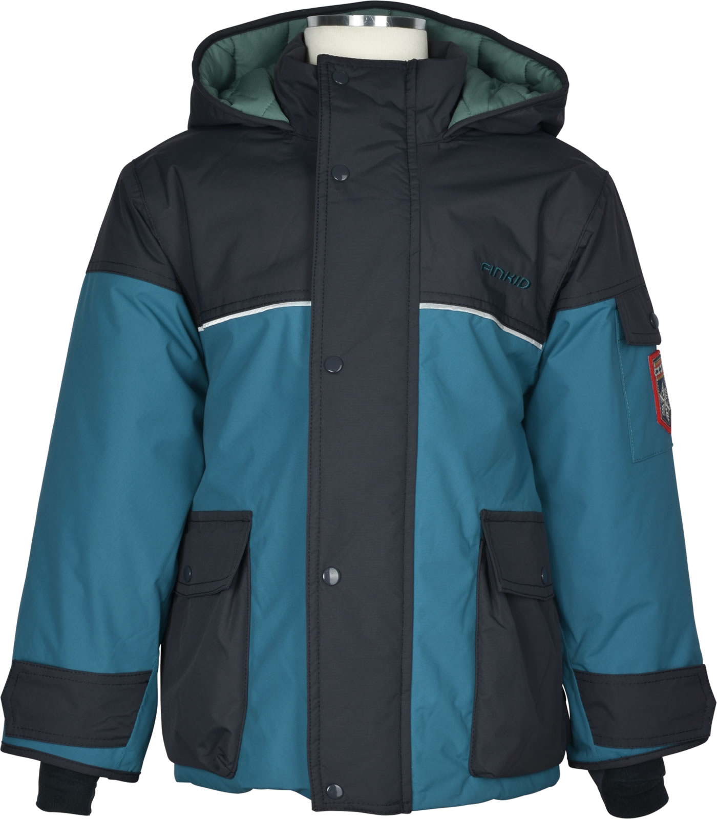 Warmer Winter-Parka PIKKU TUPPI mit Stepp-Futter und Kapuze von FINKID. Die atmungsaktive und wasserfeste Jacke ist robust. Zwei aufgesetzte Taschen mit Druckknopfverschluss auf der Vorderseite. Der Reißverschluss ist mit einer zusätzlichen Lage gegen Wind geschützt, so kann keine Kälte eindringen. Alle Nähte sind versiegelt. Die Jacke hat vorn und auf dem Rücken reflektierende Elemente.