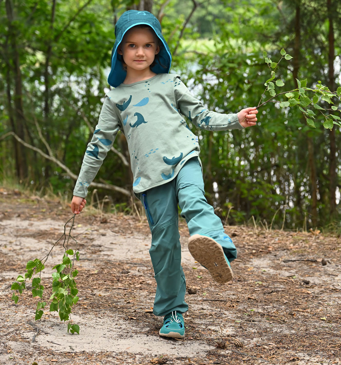 Für kleine Wald- und Wiesenentdecker ist die KIKSA MOVE von Finkid ein toller Begleiter! Die universelle Outdoorhose ist mit robusten Besätzen an den Knien und am Po ausgestattet und ist zudem noch schnelltrocknend. Die praktische Mitwachs-Funktion ermöglicht ein langes Tragen der Hose. Damit nicht in die Hosenbeine krabbelt, hat KIKSA MOVE elastische Beinabschlüsse mit Kordelzug.