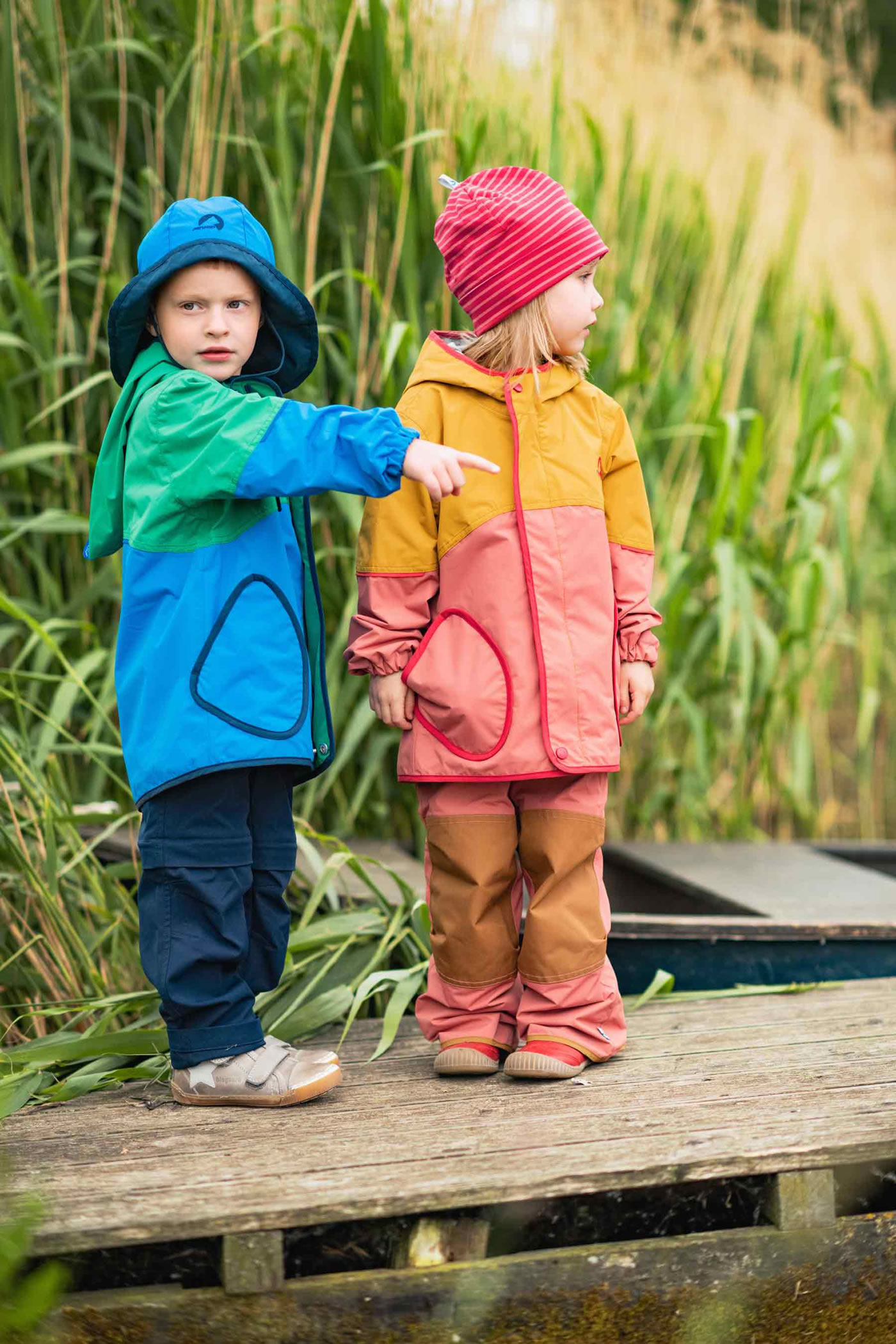Bei jedem Wetter gut ausgerüstet mit der Übergangsjacke AARRE von FINKID. Ist es kalt und nass hält die Jacke Schmutz und Regen ab und bietet eine wärmende Schicht in kühleren Stunden. Kommt die Sonne raus bleibt das atmungsaktive Material trotzdem angenehm zu tragen. Große Taschen auf der Vorderseite bieten viel Platz für die wichtigsten Dinge. Von innen ist die wasserdichte Jacke mit einem weichen Baumwollfutter versehen.