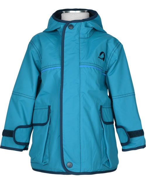 Eine super schöne aquablaue Regen Jacke. Hält auch nach mehrmaligem Waschen dicht. Toll