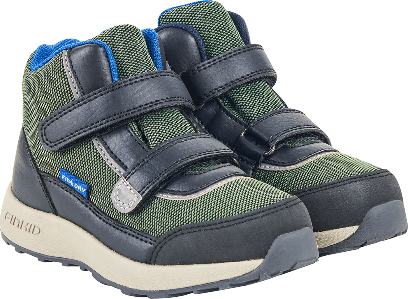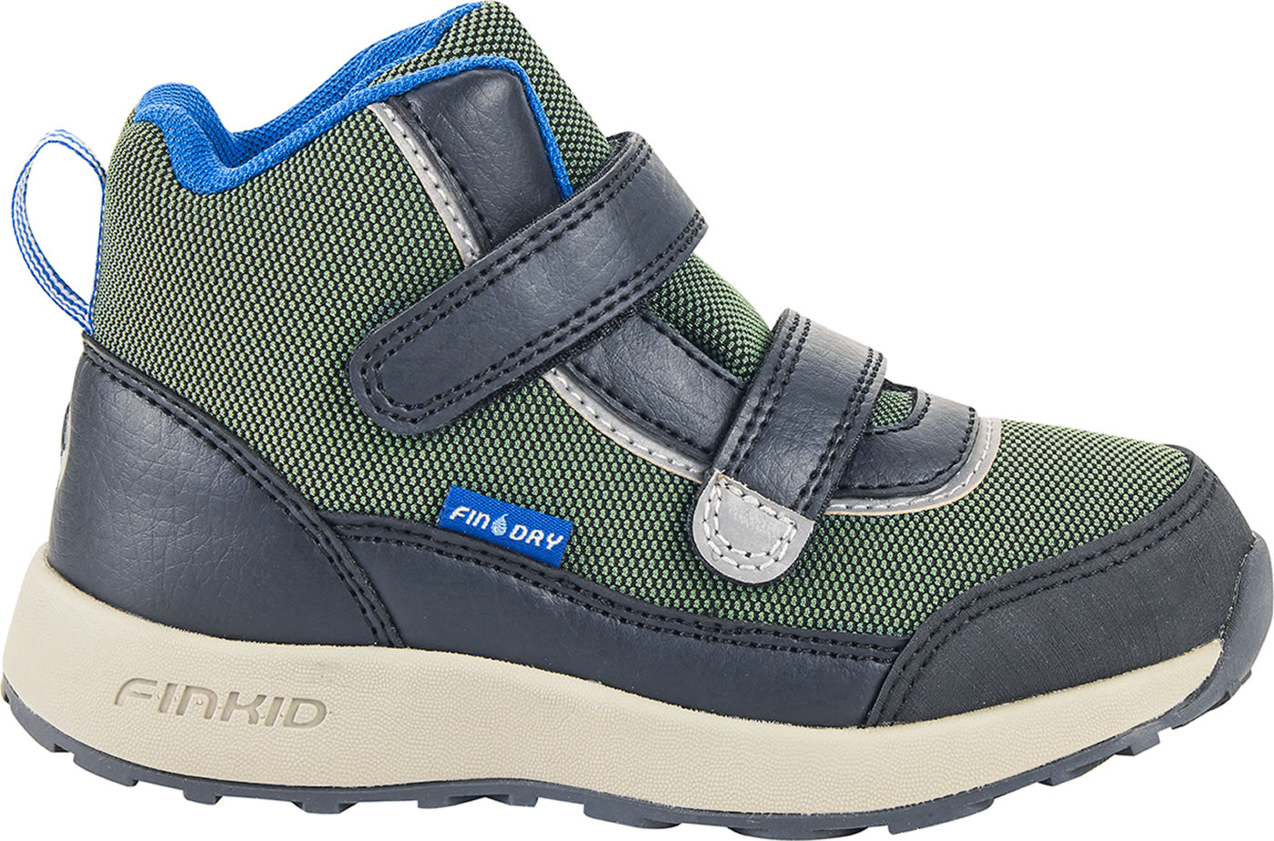 Der knöchelhohe Outdoorschuh KULKU von FINKID ist ein robuster und wasserdichter Schuh mit Klettverschluss, der beim Spielen, Toben oder Wandern in seinem Element ist. Reflektierende Elemente und leichte Sohlen machen den KULKU zu einem tollen Begleiter in der kalten Jahreszeit. Ein besonderer Clou: die herausnehmbaren Innenohlen der Schuhe haben verschiedene Farben. Der linke Fuß steht auf Blau, der rechte auf Rot. So wird das selbstständige Anziehen gefördert und Entenfüße bleiben ausgeschlossen. FINKID EVA Sohlen dämpfen selbst den höchsten Sprung ab.