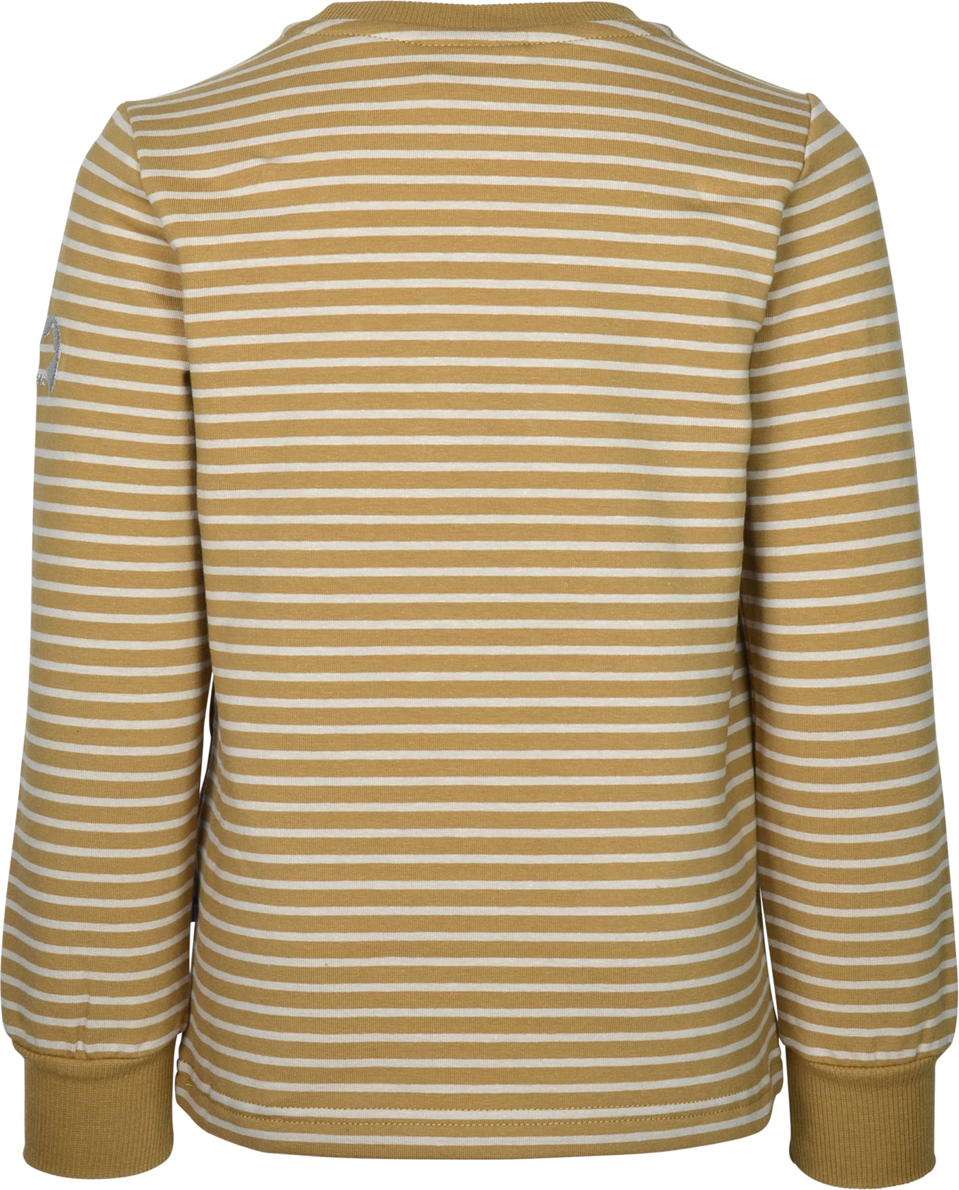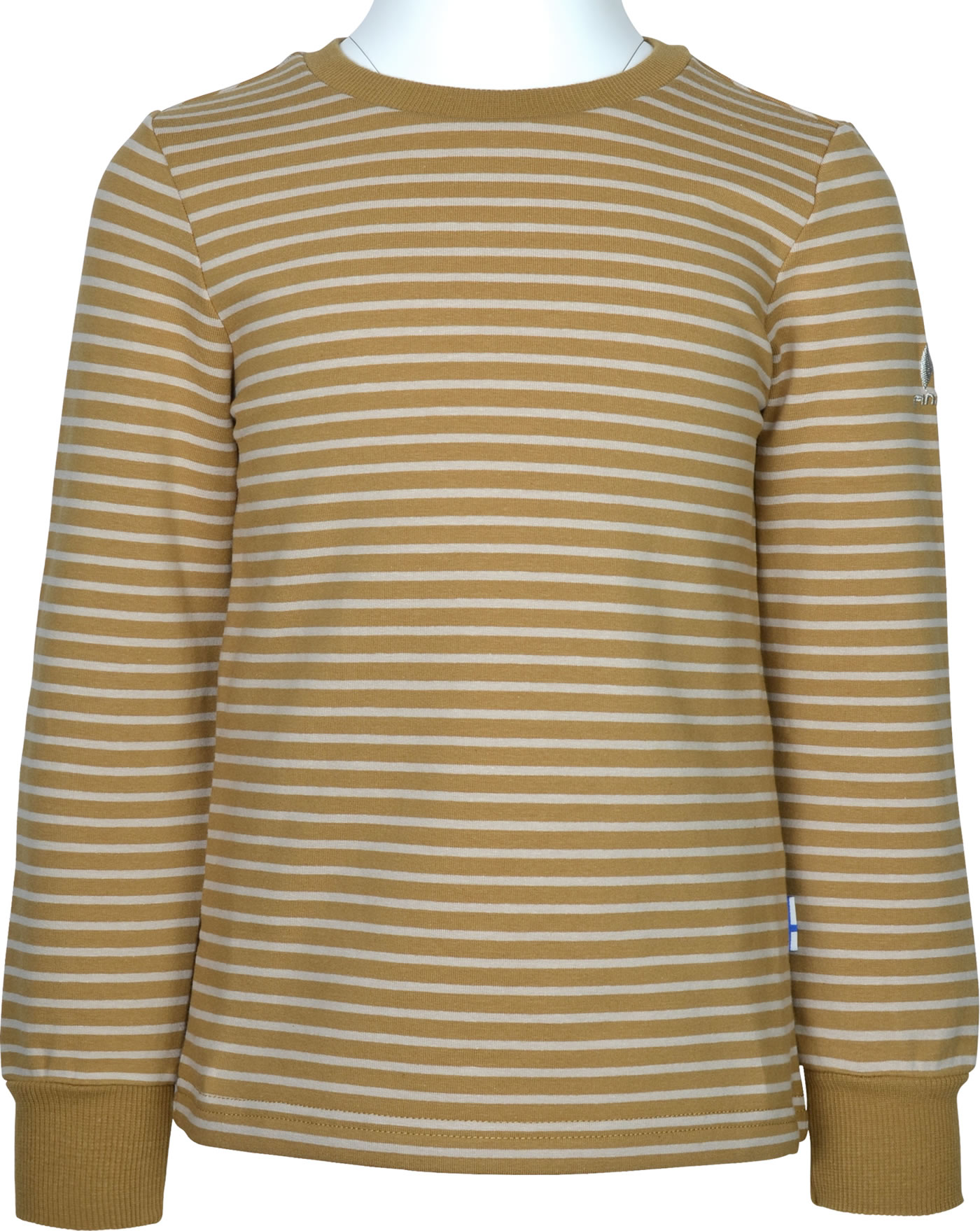 Gestreiftes, etwas dickeres Langarmshirt RIVI von FINKID mit breiten Rippbündchen und Rundhalsausschnitt. Das FINKID-Logo befindet sich auf dem linken Arm. Von innen weich angeraut.