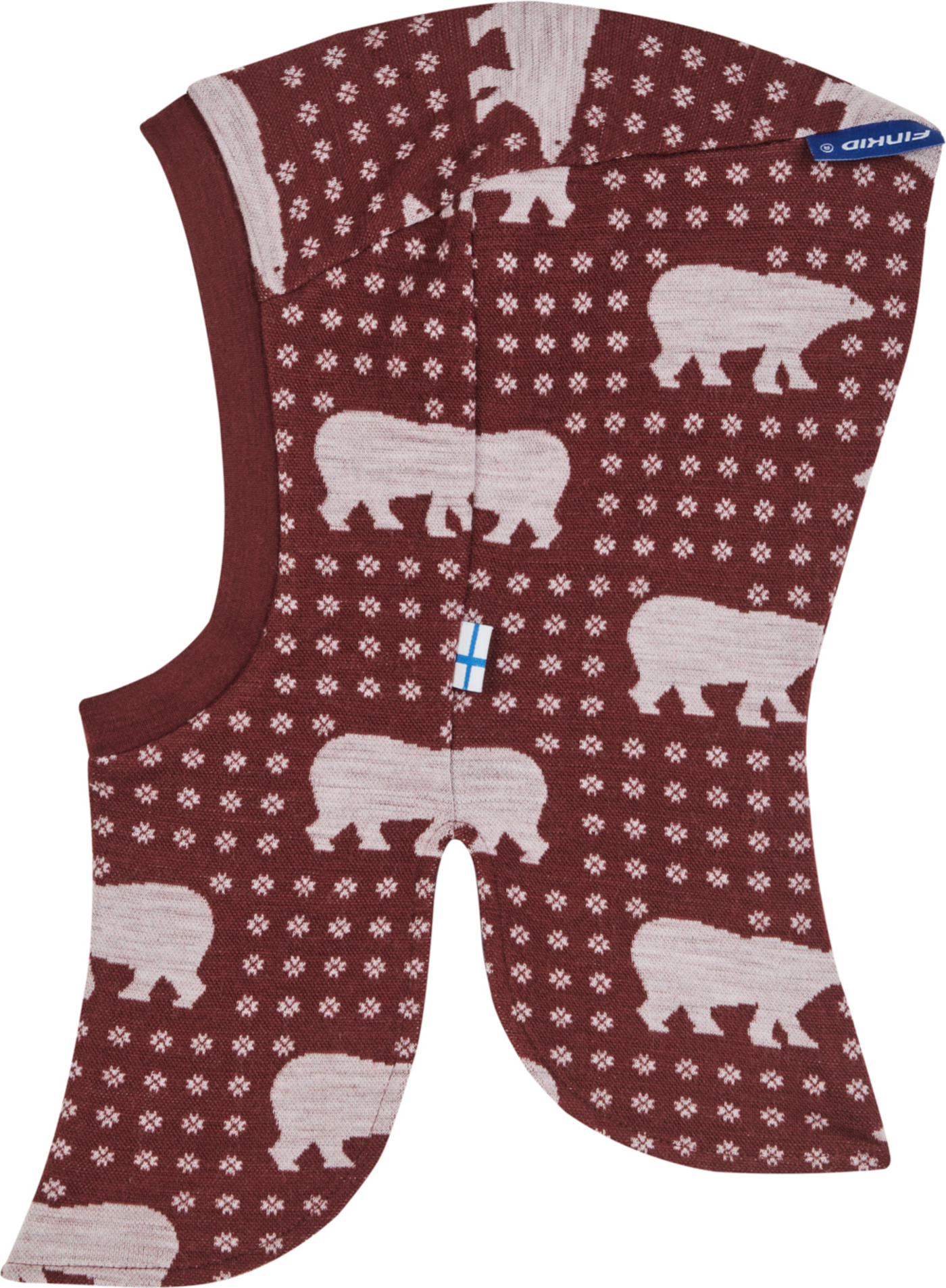 Finkid Schlupfmütze aus Wolle mit Bärenmuster LUOLA NORDIK - Cranberry