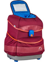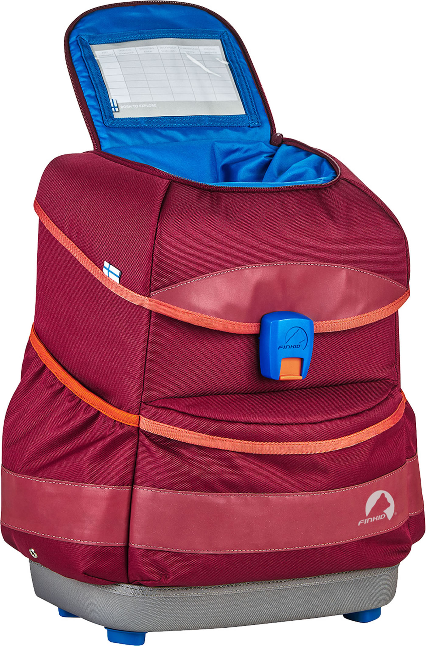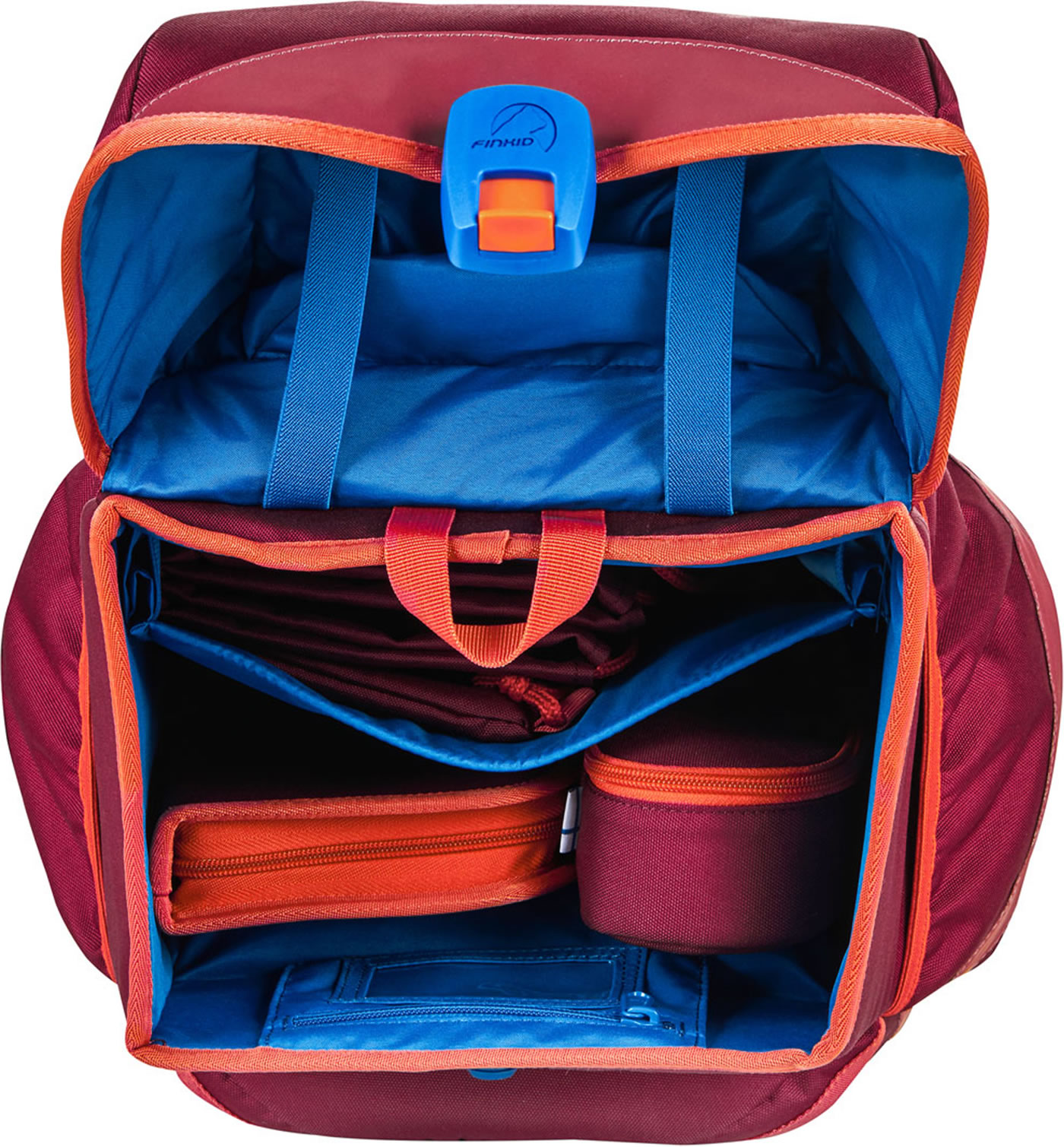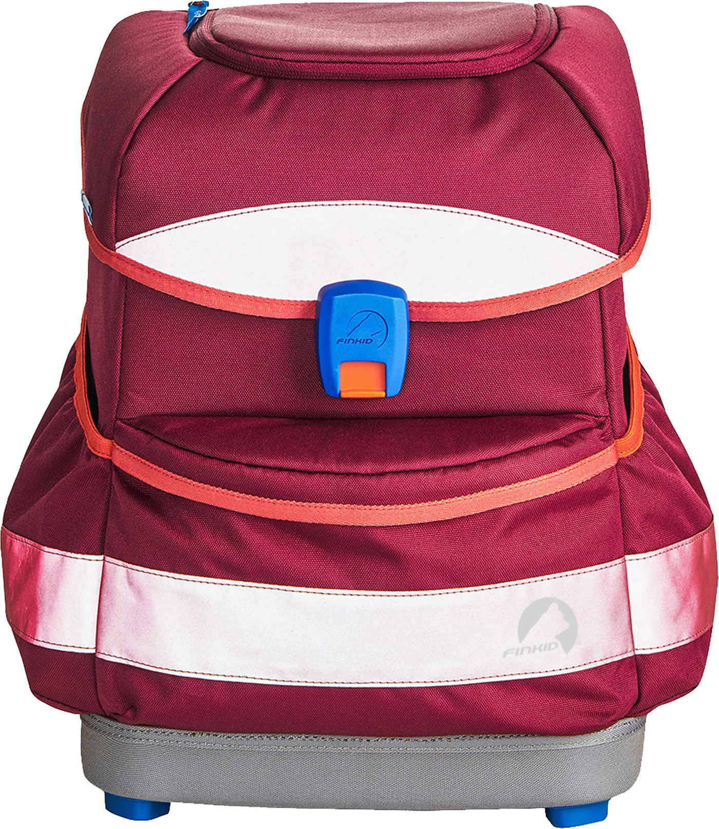 Stabiler Schulrucksack BUDDY von FINKID mit Turnbeutel, Stiftemäppchen und gefüllter Federtasche. Der Ranzen ist ideal für den Schulanfang und dank des Mitwachs-Tragesystems auch darüber hinaus. Der Rücken und die Träger mit Brust- und Hüftgurt sind gepolstert und erleichtern das Tragen. Der Hartschalenboden macht den Ranzen sehr robust und vier Füße sorgen für einen guten Stand.