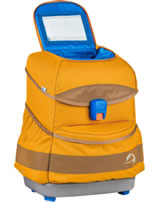 Das Material ist wasserfest und schmutzabweisend und große Reflektorflächen sorgen für eine gute Sichtbarkeit. Der Rucksack hat eine tolle Aufteilung mit Außentaschen, übersichtlichem Innenraum und einem stabilen Deckel mit Innenfach und Stundenplan.