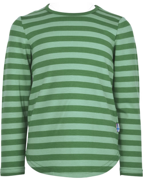 Gestreiftes Langarm-Shirt aus umweltfreundlichem Bambus-Jersey MERISILLI von FINKID. Das luftige Material ist besonders an heißen angenehm zu tragen und hat einen kühlenden Effekt.