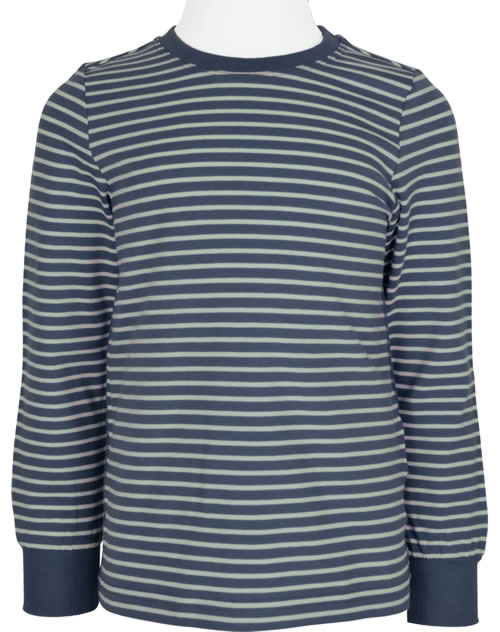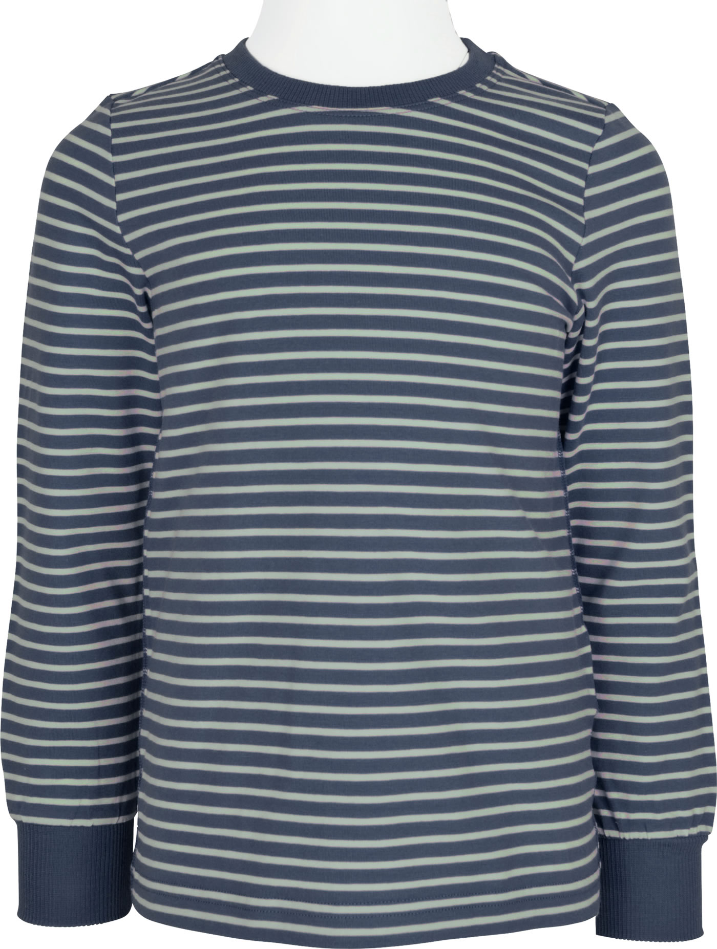 Gestreiftes Langarm-Shirt RULLA von FINKID.. Das anliegend geschnittene Shirt hat farblich abgesetzte Bündchen an Hals und Ärmeln. Das Material aus ökologisch hergestellter Baumwolle bietet einen hohen Tragekomfort.