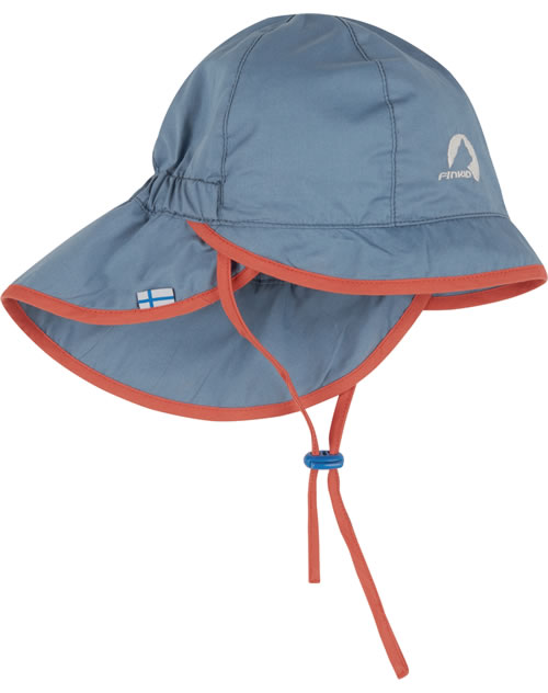 Sommerhut Helle mit Nackenschutz für Jungen und Mädchen von FINKID. Der Südwester hat einen Lichtschutzfaktor von 50+ und das Bindeband läßt sich individuell einstellen. An der Rückseite befindet sich ein Gummibund, der sich optimal dem Hinterkopf anpasst.