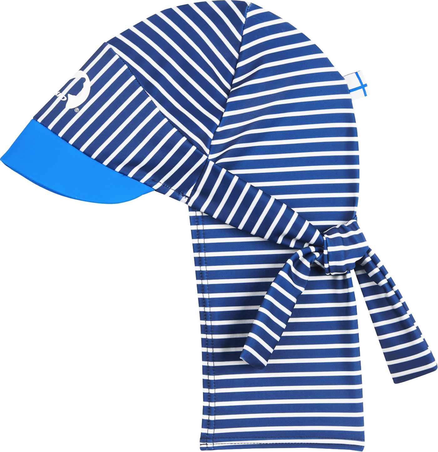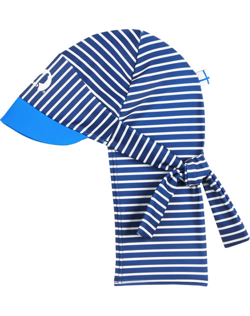 Schnelltrocknende Strandmütze FAKIIRI BEACH mit Schirm und Nackenschutz von FINKID für Jungen und Mädchen. Sie hat einen Sonnenschutzfaktor von 50+. Am Hinterkopf mit Bindeband zum individuellen Einstellen der Größe. Die Mütze ist ein treuer Begleiter an sonnigen Tagen.
