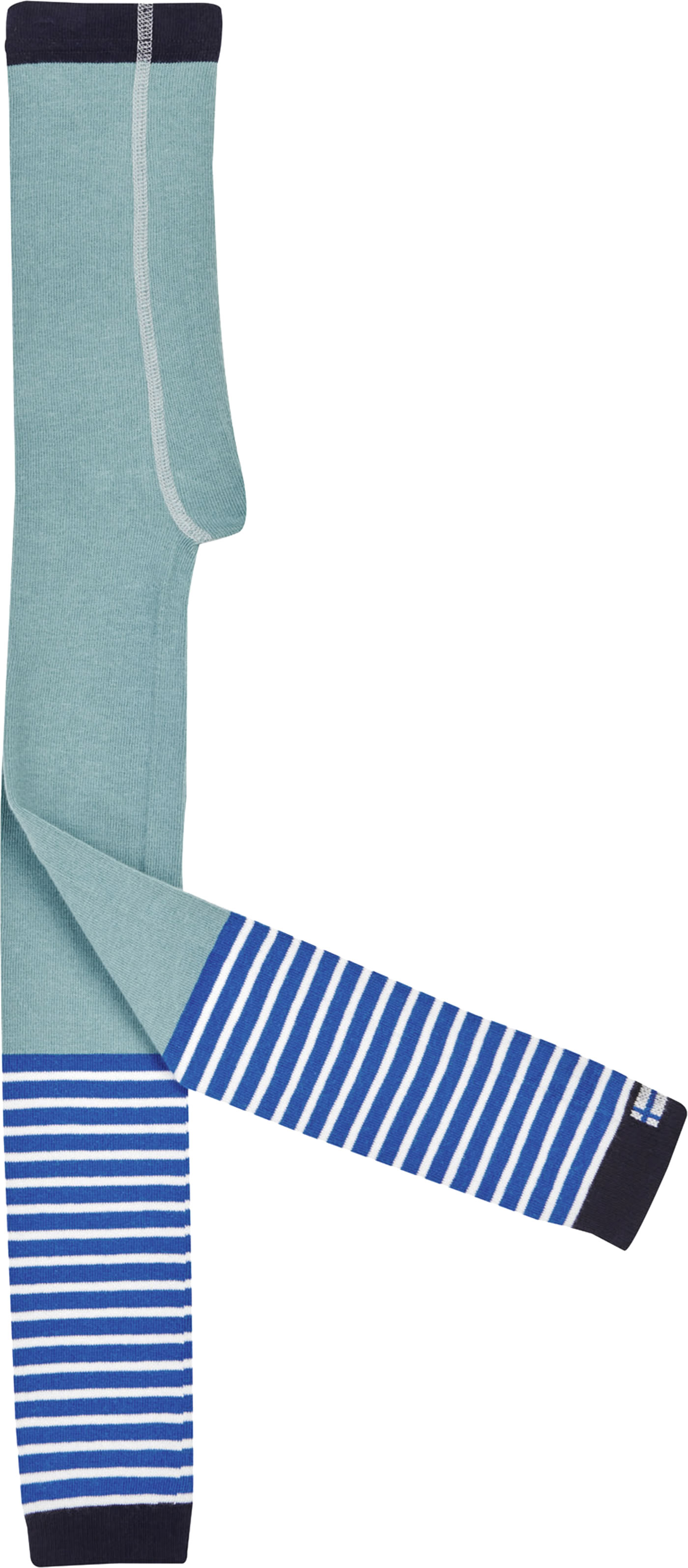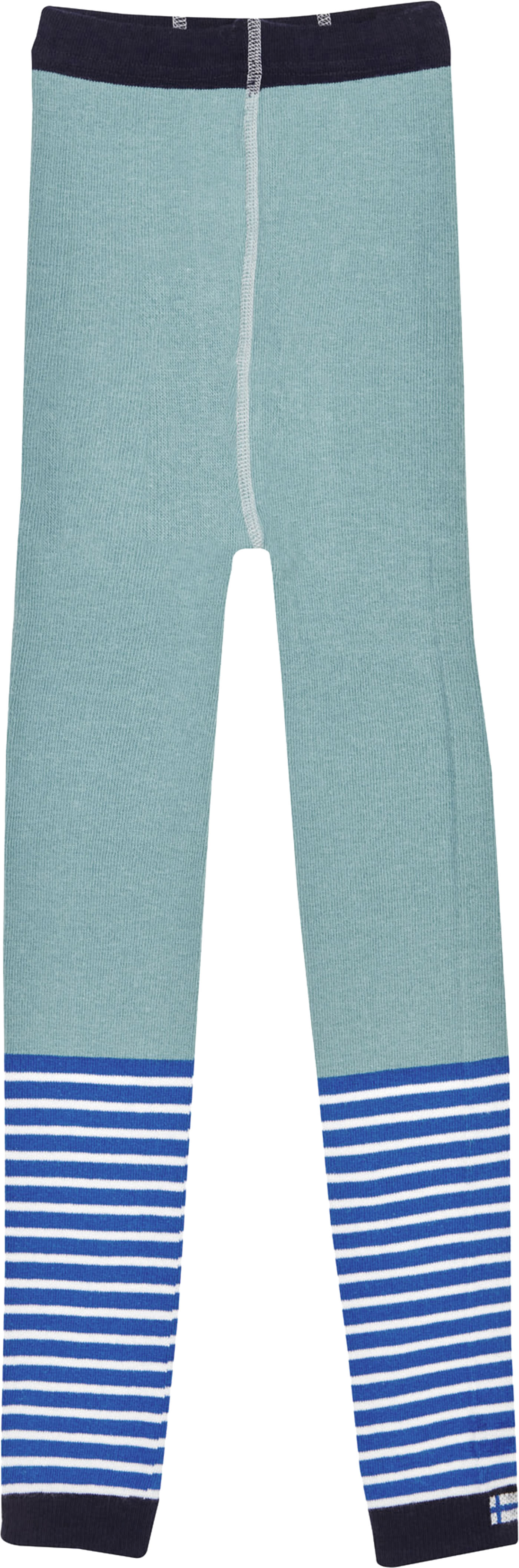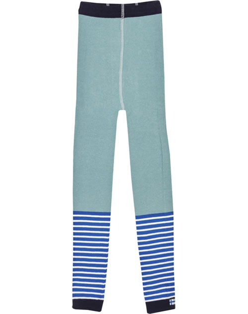 Warme Strick-Leggings in blau und grün mit weißen Streifen von FINKID. Sie hält schön warm und peppt Outfits durch ihr pfiffiges Design auf. Dank der Baumwollmischung bleibt sie formstabil.