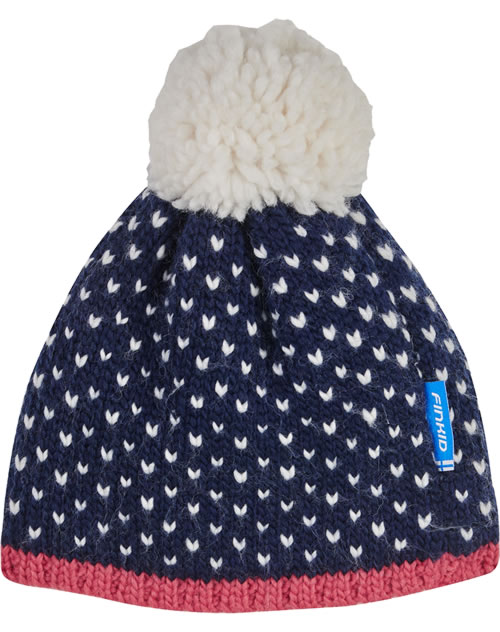 Finkid Strick-Mütze Wolle m. Bommel PEKONI navy/rose