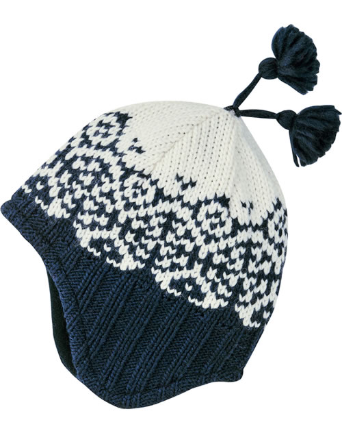 Finkid Strick-Mütze Wolle m. Bommel PEPPI navy/offwhite