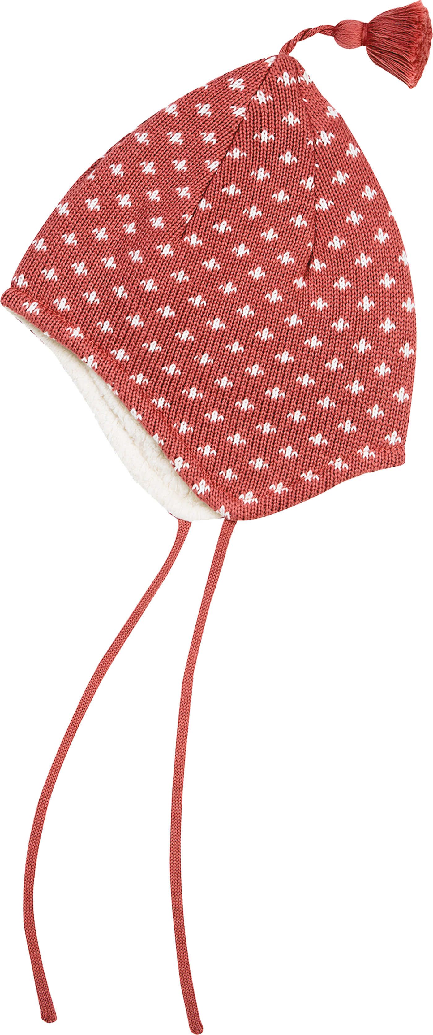 Wärmende Zipfelmütze TIPSA aus hochwertigem Baumwollstrick außen und kuschelweichem Baumwollfleece innen von FINKID. Für passgenauen Komfort sorgen angeschnittene Ohrenklappen und Bindebänder.