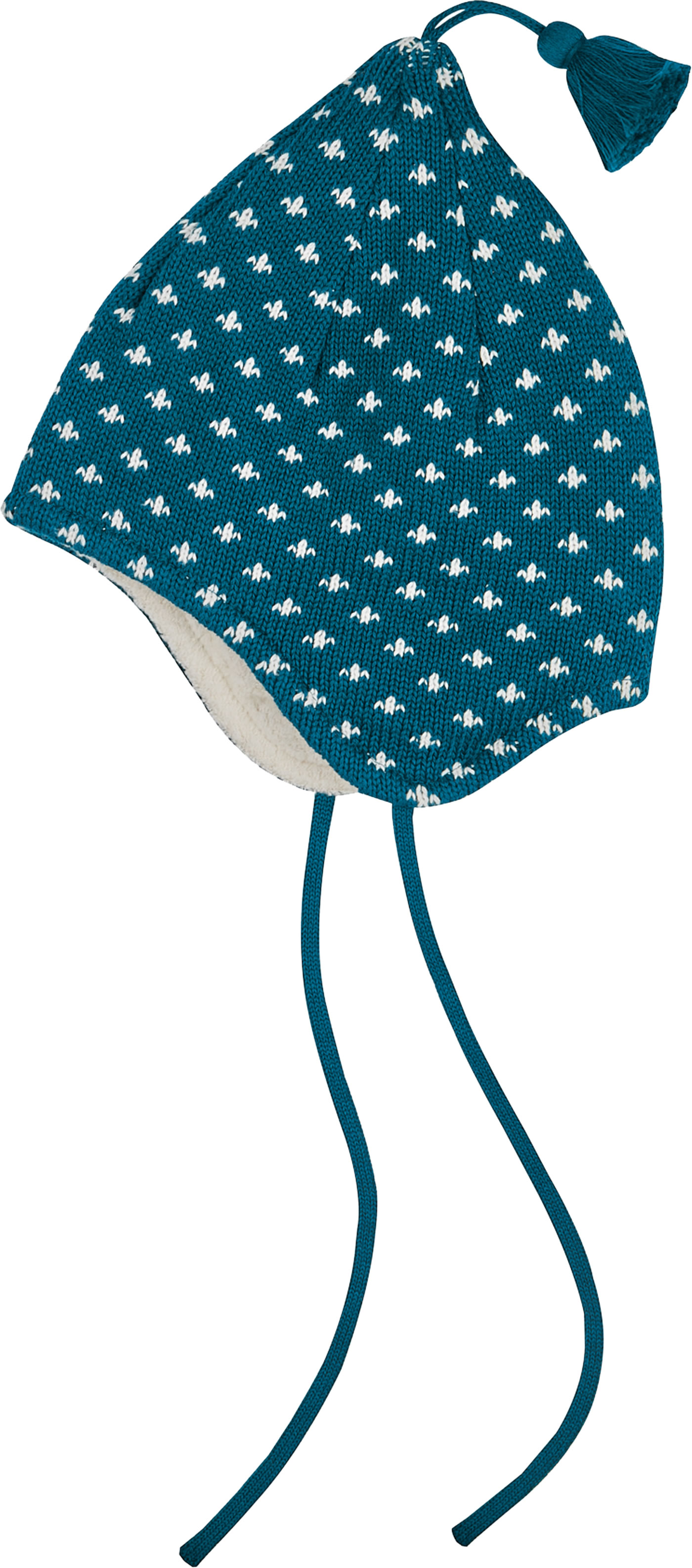 Wärmende Zipfelmütze TIPSA aus hochwertigem Baumwollstrick außen und kuschelweichem Baumwollfleece innen von FINKID. Für passgenauen Komfort sorgen angeschnittene Ohrenklappen und Bindebänder.