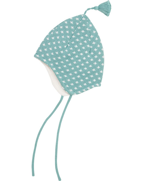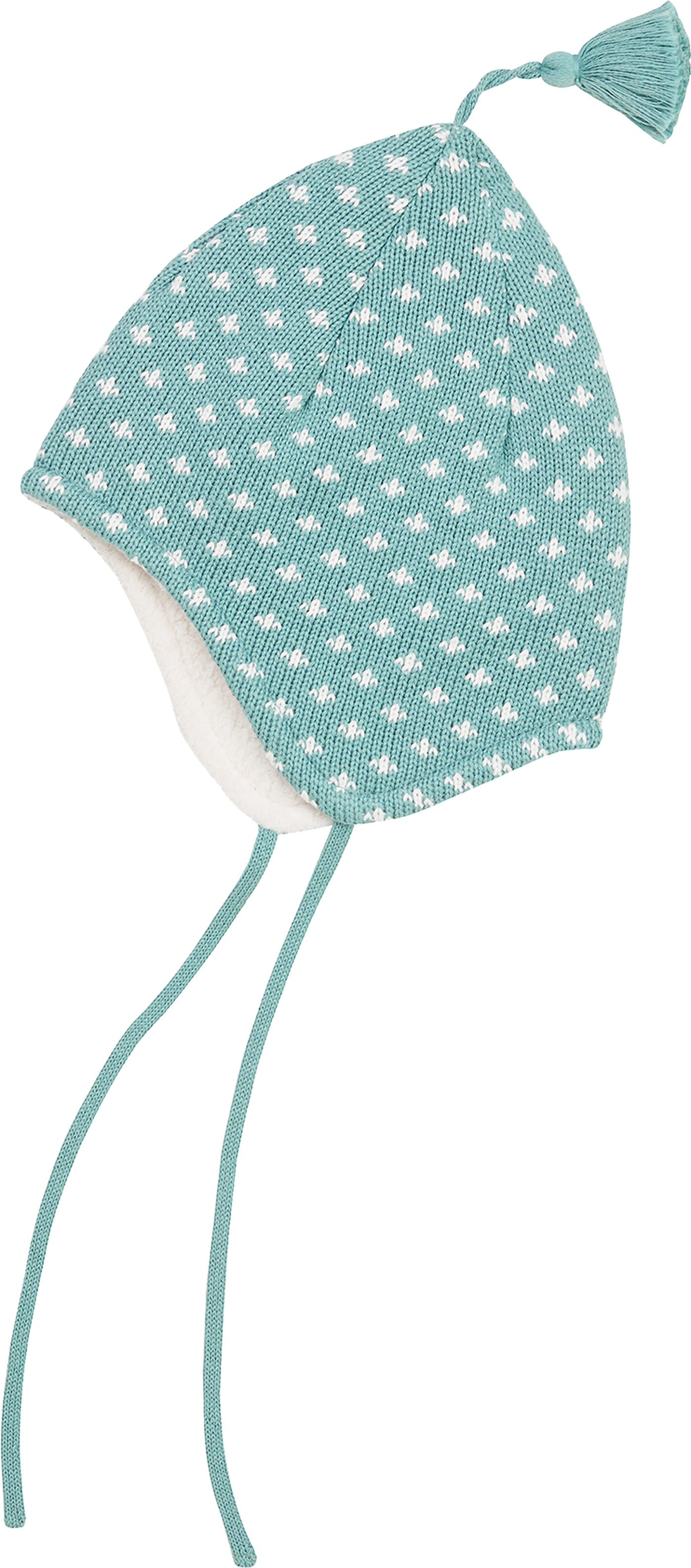 Wärmende Zipfelmütze TIPSA aus hochwertigem Baumwollstrick außen und kuschelweichem Baumwollfleece innen von FINKID. Für passgenauen Komfort sorgen angeschnittene Ohrenklappen und Bindebänder.