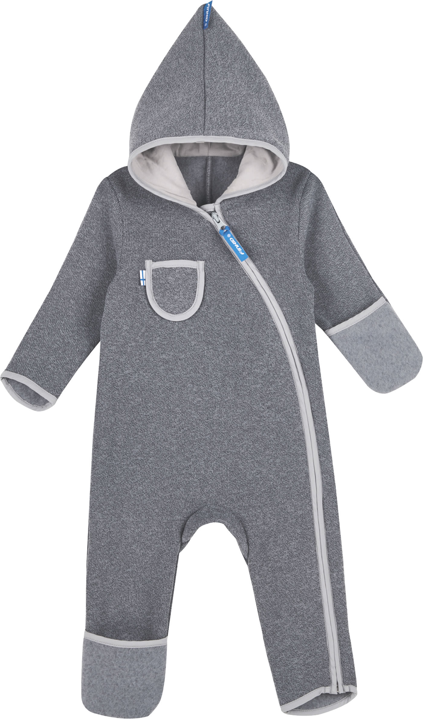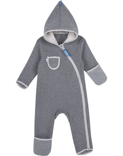 Kuschelweicher Strickfleece-Overall PUKU SPORT mit Zipfelkapuze von FINKID. Der Overall ist atmungsaktiv und wärmeisolierend. Der Reißverschluss besitzt einen Kinnschutz und ist unterlegt. Er reicht vom Kinn bis zu den Füßen für erleichtertes An- und Ausziehen. Die Hände und Füße können umgestülpt werden. Innen ist der Overall kuschelweich angeraut.