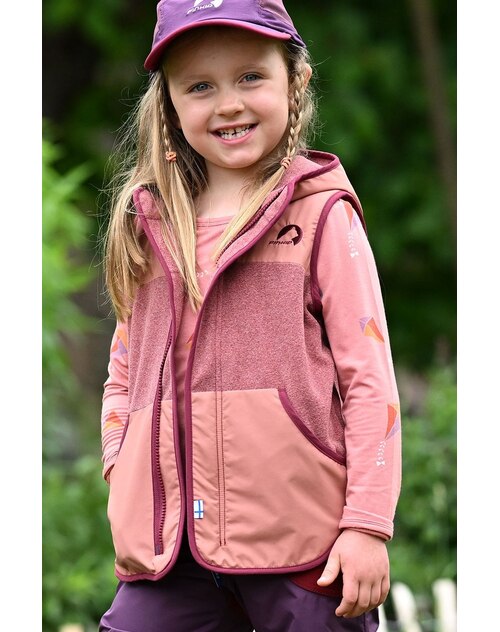 Die Weste ONNI KNIT von FINKID aus kuschelweichem Strickfleece und mit wasserfesten Details hat einiges zu bieten.