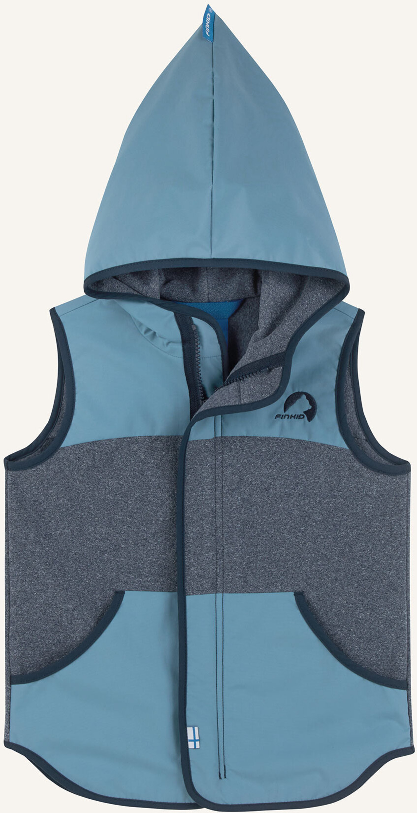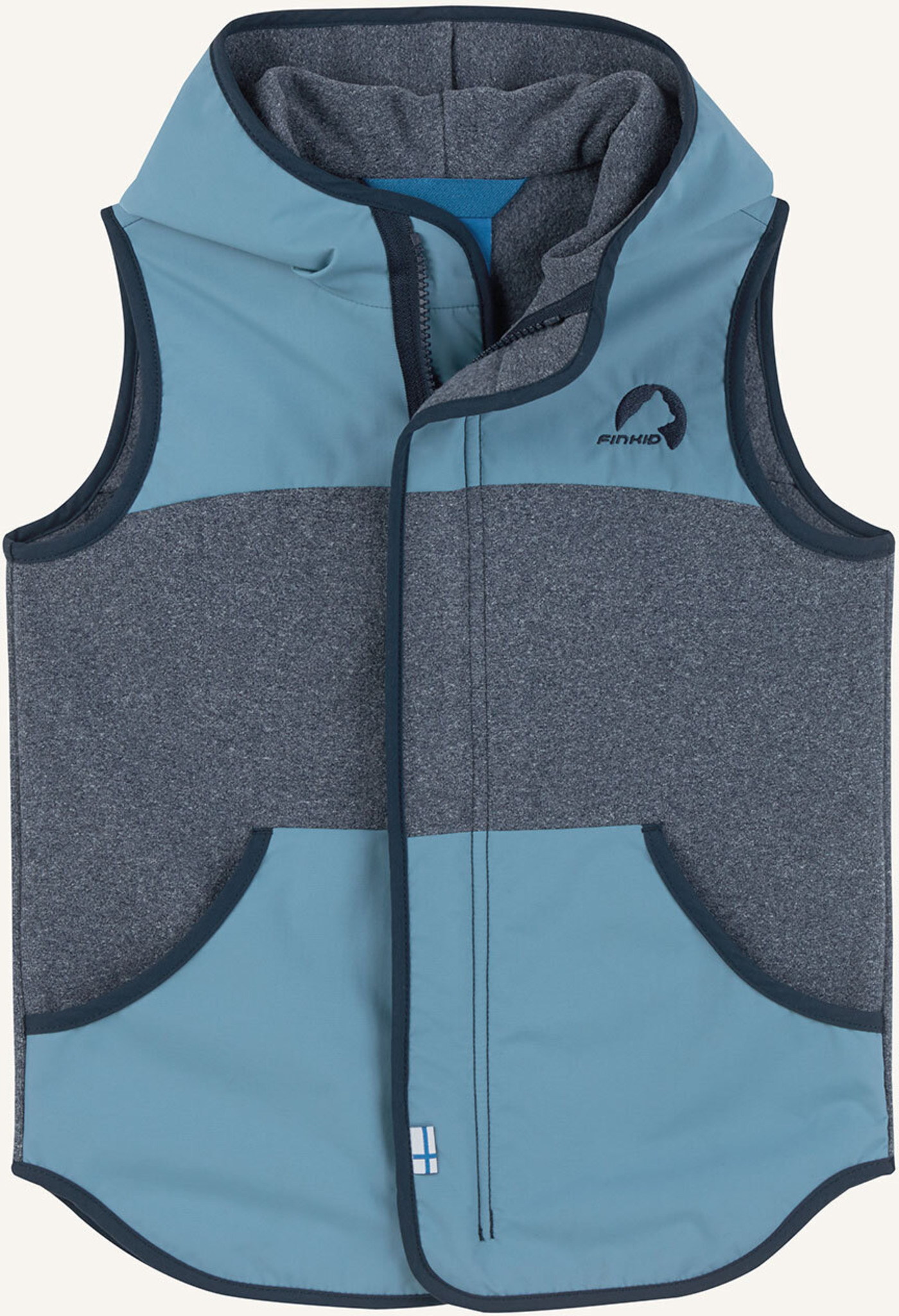 Die Weste ONNI KNIT von FINKID aus kuschelweichem Strickfleece und mit wasserfesten Details hat einiges zu bieten.