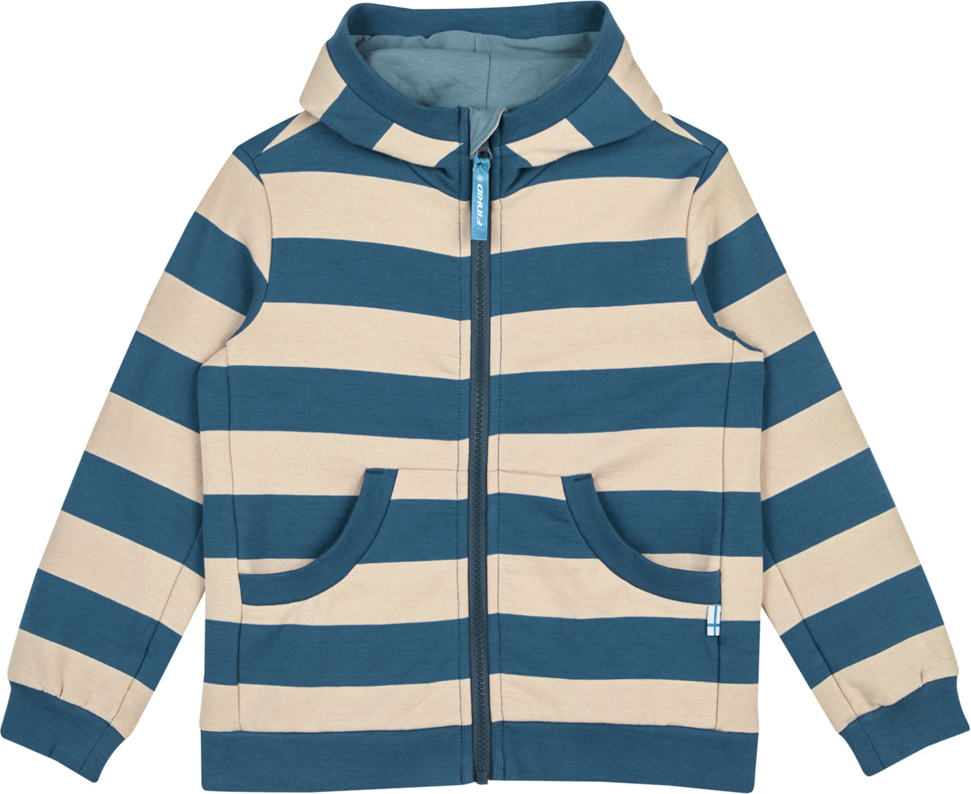 Kuschelweiche Sweatjacke Laiva für Kinder von FINKID. Die Zip in Innenjacke LAIVA aus Biobaumwolle hat eine weich angeraute Innenseite und Kängurutaschen, die Platz für Kleinigkeiten bieten. Ein gemütliches Must-have mit Blockstreifen in fröhlichen Farben. Die Jacke gibt es ab Größe 122/128 mit runder Kapuze. Die Jacke kann solo getragen werden oder als zusätzlicher Wärmeschutz in eine Outdoor-Jacke eingezippt werden.