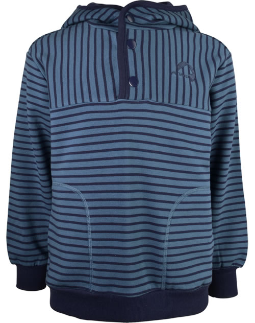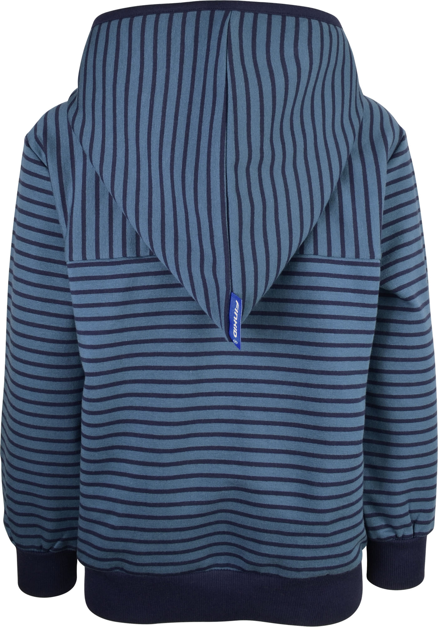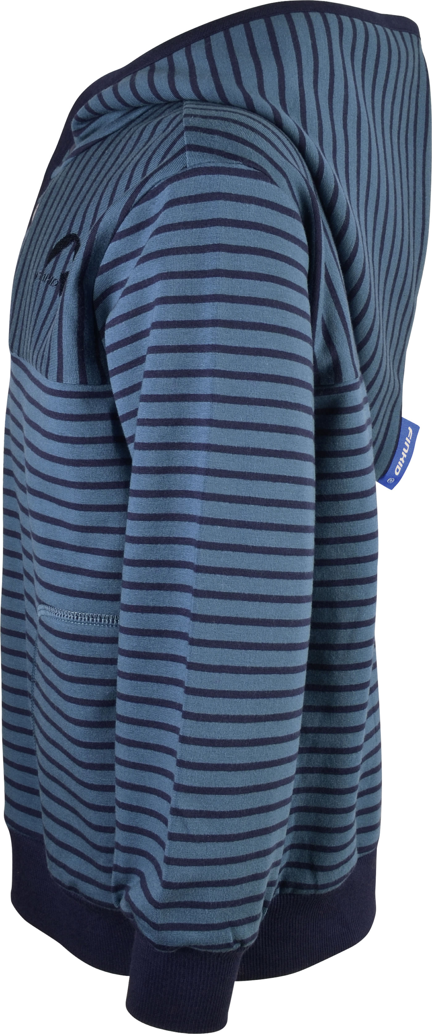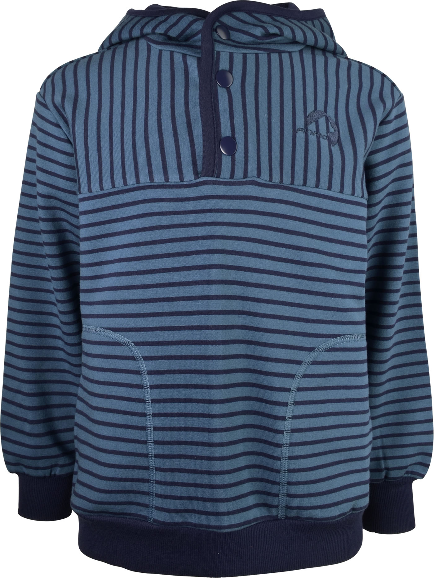 Geringelter Hoodie KALAJOKI von FINKID aus kuschelweichem Sweatjersey mit weichen Rippbündchen an Ärmeln und am Saum. Die Druckknopfleiste vorn erleichtert das An- und Ausziehen und die beiden Vordertaschen bieten Platz für kleine Schätze.Die Zipfelkapuze ist mit weichem Jersey gefüttert und innen ist das lässige Sweatshirt weich angeraut und dadurch schön warm.