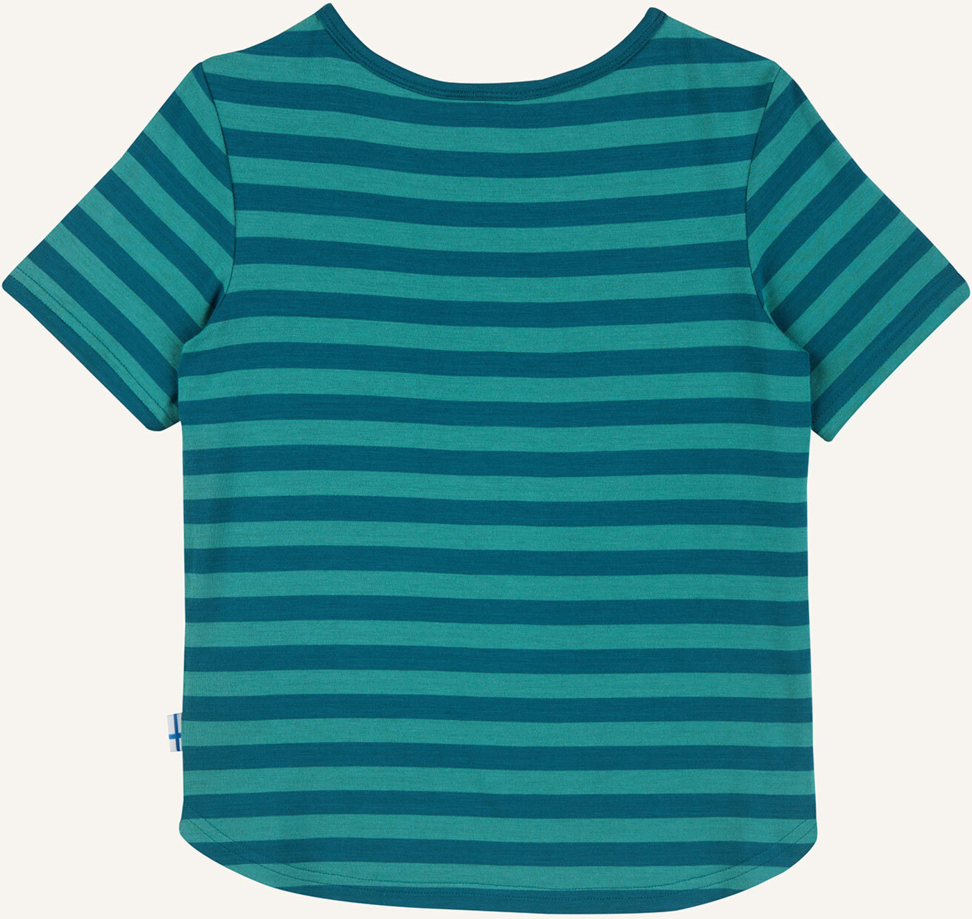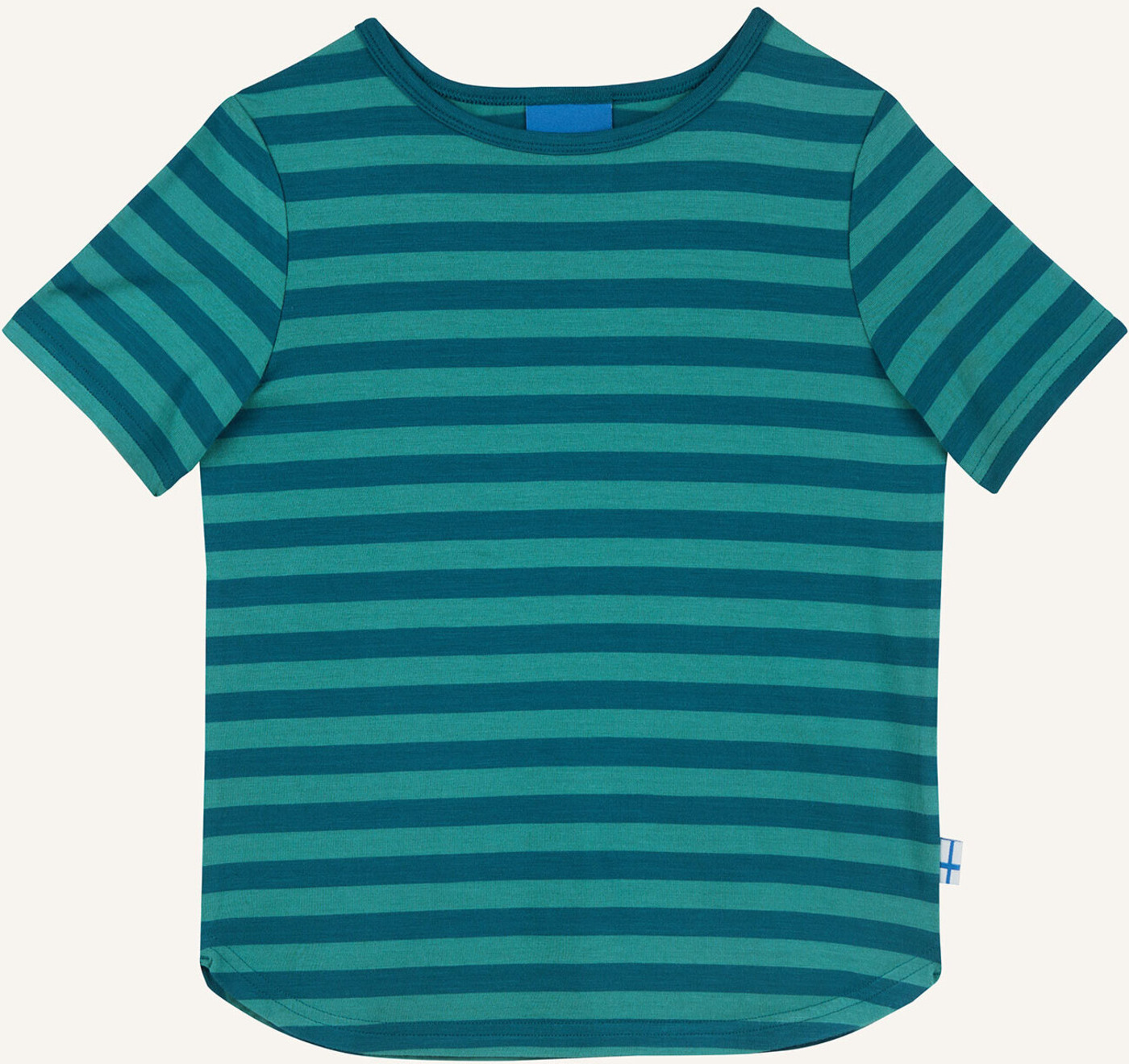 Gestreiftes T-Shirt aus umweltfreundlichem Bambus-Jersey MAALARI von FINKID. Das luftige Material ist besonders an heißen Tagen angenehm zu tragen und hat einen kühlenden Effekt.