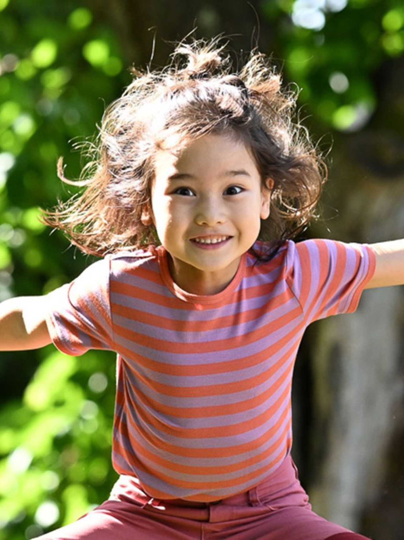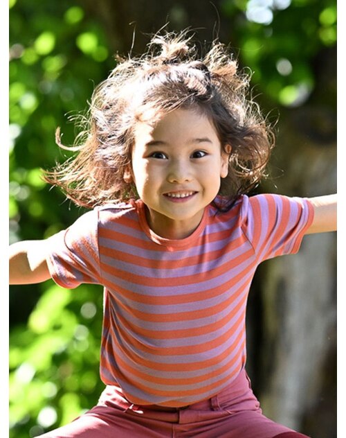 Gestreiftes T-Shirt aus umweltfreundlichem Bambus-Jersey MAALARI von FINKID. Das luftige Material ist besonders an heißen Tagen angenehm zu tragen und hat einen kühlenden Effekt.