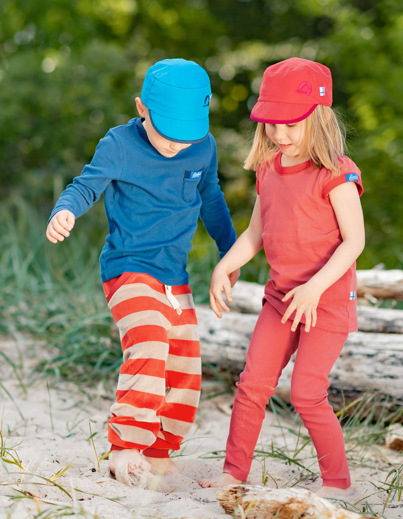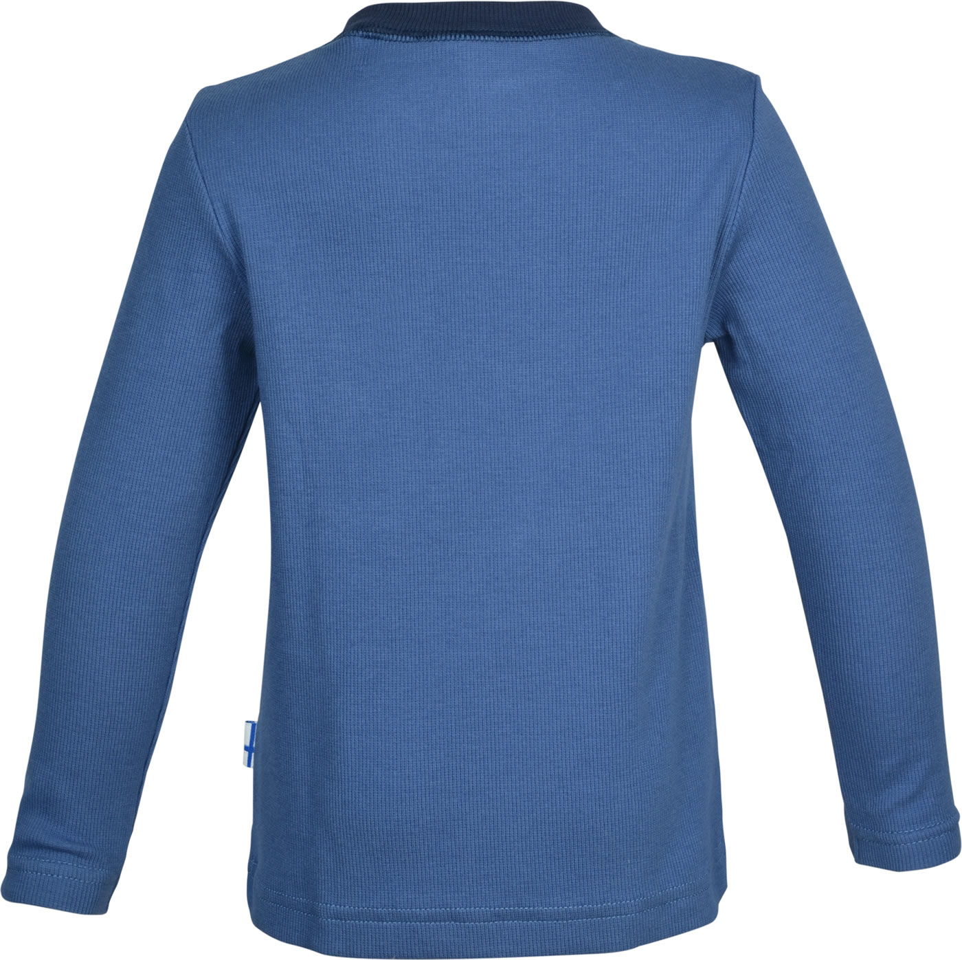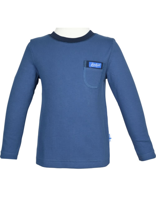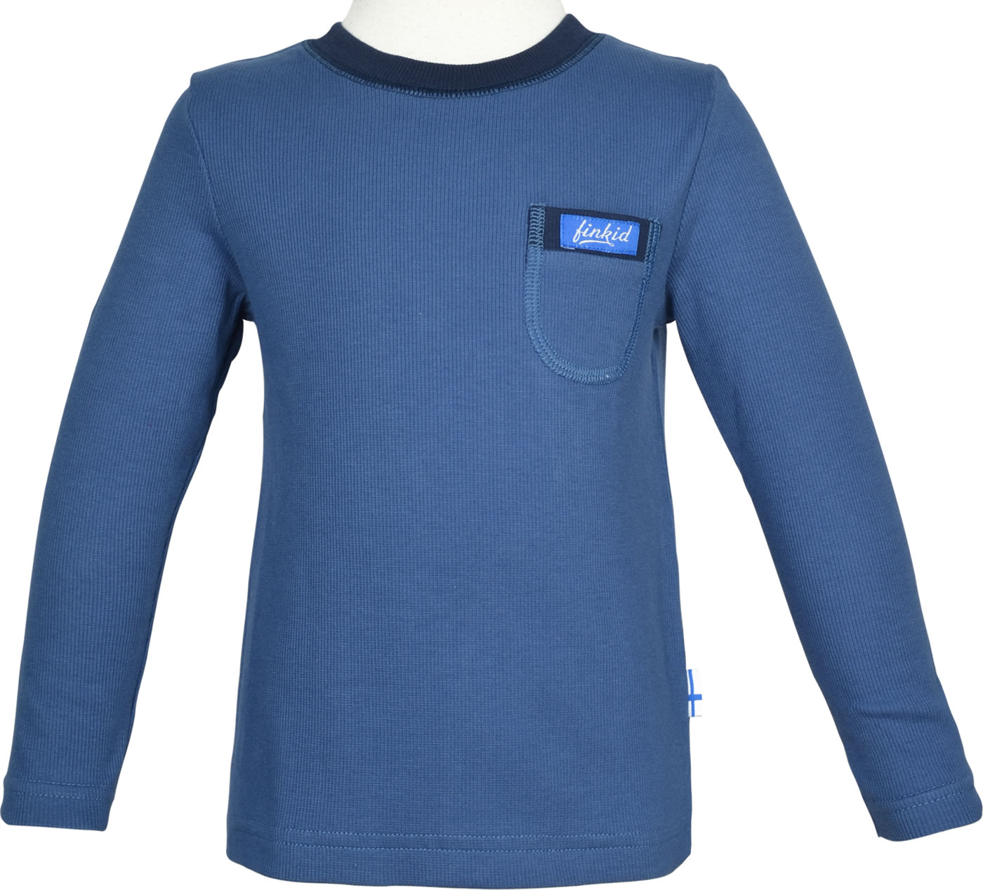 Geripptes Langarmshirt Laku von FINKID mit Rundhalsausschnitt und aufgesetzter Brusttasche. Das FINKID-Logo befindet sich auf der kleinen Tasche.