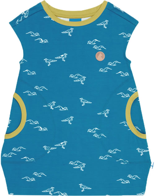 Tunika Neiti aus ökologischer Baumwolle in celestial/lemon von FINKID für Mädchen. Sie bringt Farbe in den Sommer und ist solo, über Leggings oder einer wetterfesten Hose getragen immer eine gute Wahl. Die hübschen Flügelärmel und der luftige Ballonschnitt zaubern ein lockeres Design für den Sommer. Mit Lichtschutzfaktor 50+.