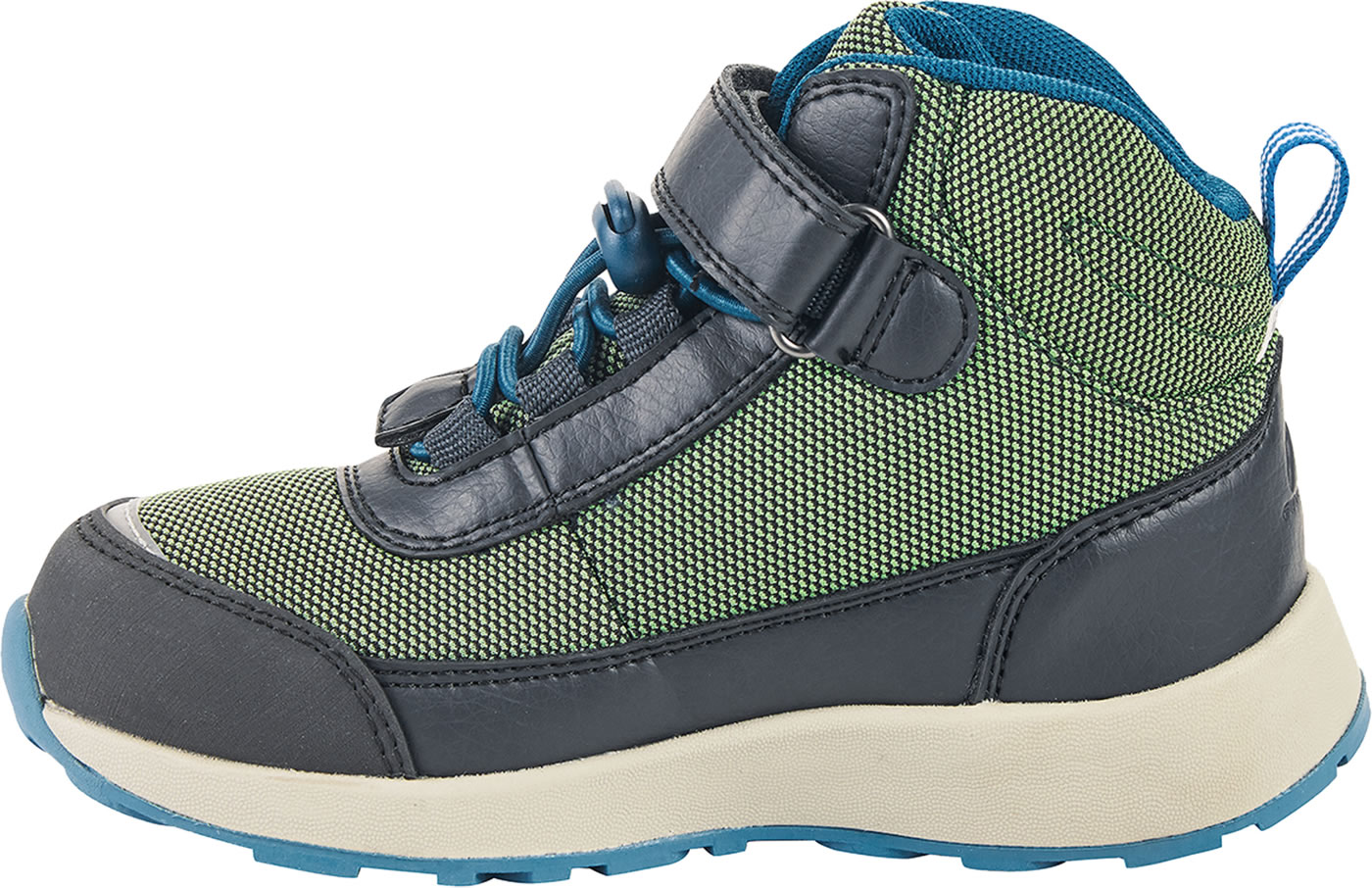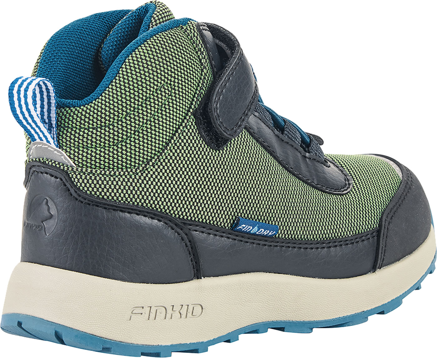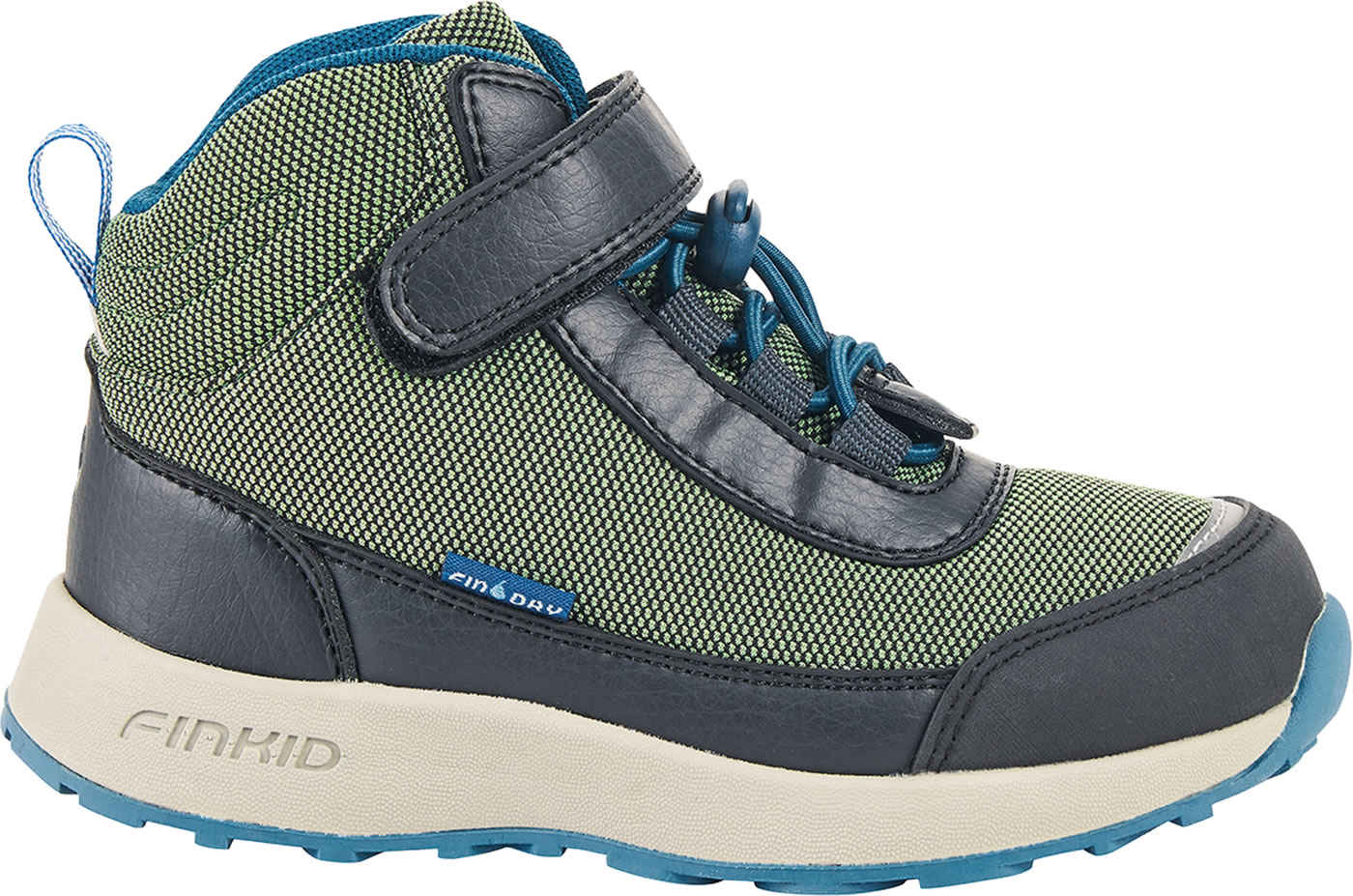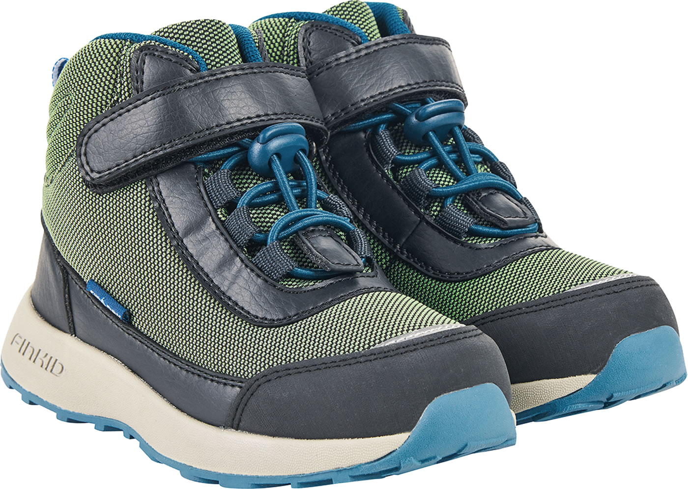 Der knöchelhohe Outdoorschuh VUORI von FINKID ist ein robuster und wasserdichter Schuh mit Klett- und Zugverschluss, der beim Spielen, Toben oder Wandern in seinem Element ist. Reflektierende Elemente und leichte Sohlen machen den VUORI zu einem tollen Begleiter in der kalten Jahreszeit. Ein besonderer Clou: die herausnehmbaren Innenohlen der Schuhe haben verschiedene Farben. Der linke Fuß steht auf Blau, der rechte auf Rot. So wird das selbstständige Anziehen gefördert und Entenfüße bleiben ausgeschlossen. FINKID EVA Sohlen dämpfen selbst den höchsten Sprung ab.