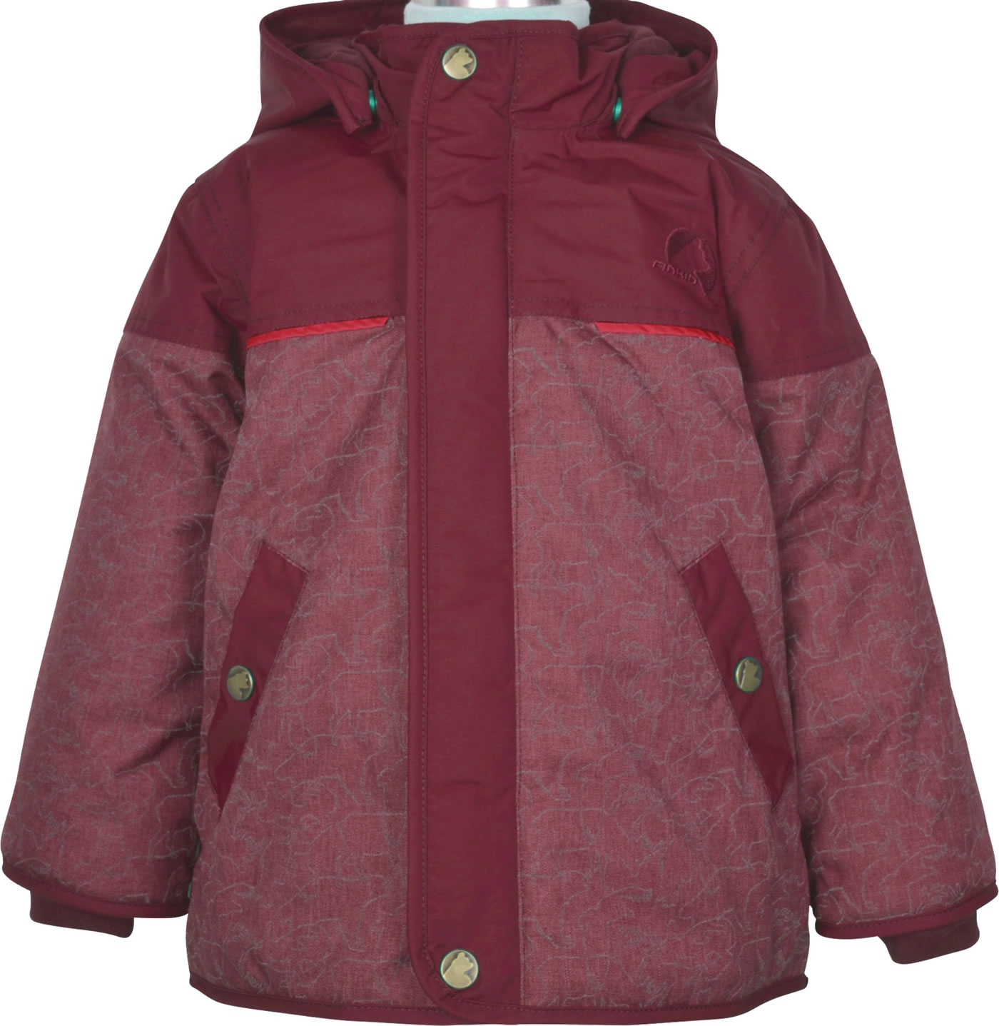 Tolle Winterjacke KOIRA ICE von FINKID. Nicht nur dass der Winteranorak schmutz- und wasser abweisend sowie wasserfest und wärmeisolierend ist, durch viele tolle Details wie kleine Taschen und der stimmigen Farbkombination wird die Jacke zum Lieblingsbegleiter im Winter. Ein Schneefang in der Taille eingearbeitet sorgt für einen guten Sitz und verhindert das Eindringen von Schnee, wenn es mal wieder stürmischer zugeht. Die gefütterte Kapuze lässt sich kinderleicht ab- und anzippen. Anschmiegsame Fleece-Bündchen in den Ärmeln sorgen für einen hohen Tragekomfort. Für eine bessere Sichtbakeit im Dunkeln sorgen der reflektierende Animal-Print im Stoff und Reflektostreifen.