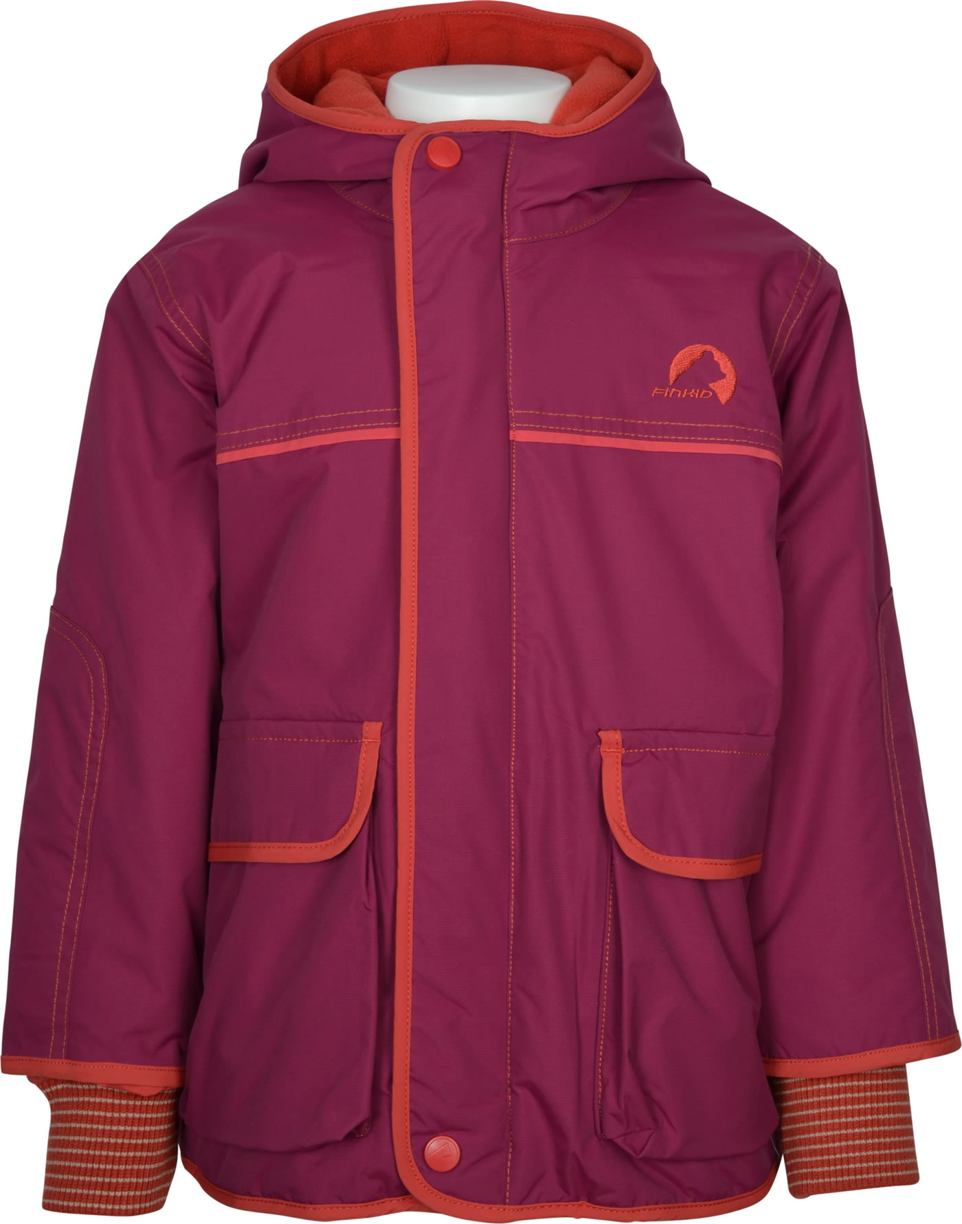 Warmer Winter-Parka TALVI EKO mit Fleece-Futter und Kapuze von FINKID. Die atmungsaktive und wasserfeste Jacke ist robust. Zwei aufgesetzte Taschen mit Klettverschluss auf der Vorderseite. Der Reißverschluss ist mit einer zusätzlichen Lage gegen Wind geschützt, so kann keine Kälte eindringen. Innen mit Schneefang. Alle Nähte sind versiegelt. Vorn und hinten befinden sich reflektierende Elemente. Die Jacke ist zu einem großen Teil aus recycelten Materialien.