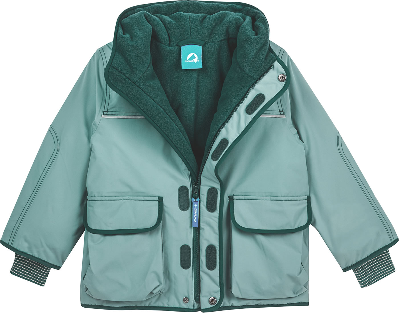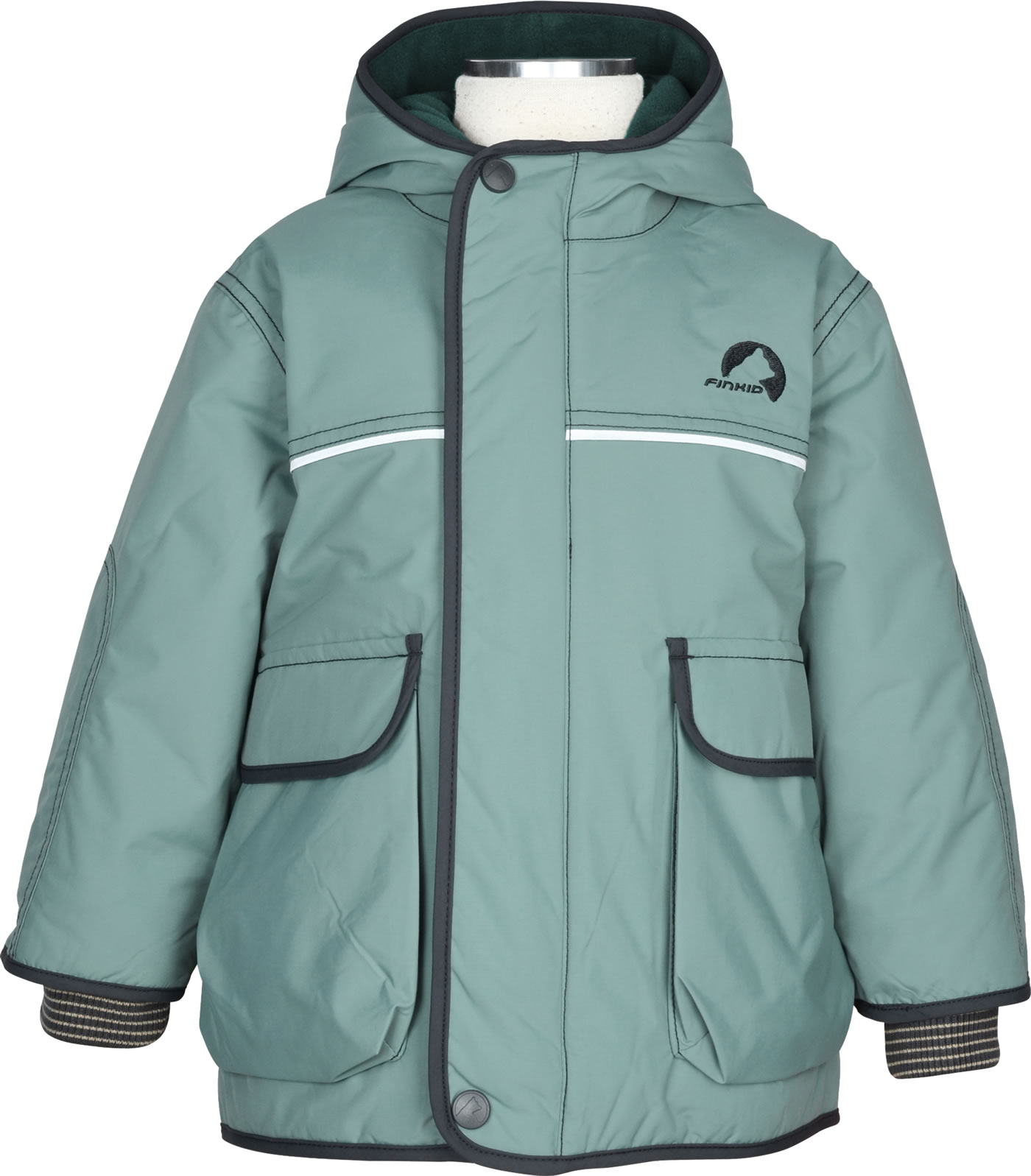 Warmer Winter-Parka TALVI EKO mit Fleece-Futter und Kapuze von FINKID. Die atmungsaktive und wasserfeste Jacke ist robust. Zwei aufgesetzte Taschen mit Klettverschluss auf der Vorderseite. Der Reißverschluss ist mit einer zusätzlichen Lage gegen Wind geschützt, so kann keine Kälte eindringen. Innen mit Schneefang. Alle Nähte sind versiegelt. Vorn und hinten befinden sich reflektierende Elemente. Die Jacke ist zu einem großen Teil aus recycelten Materialien.