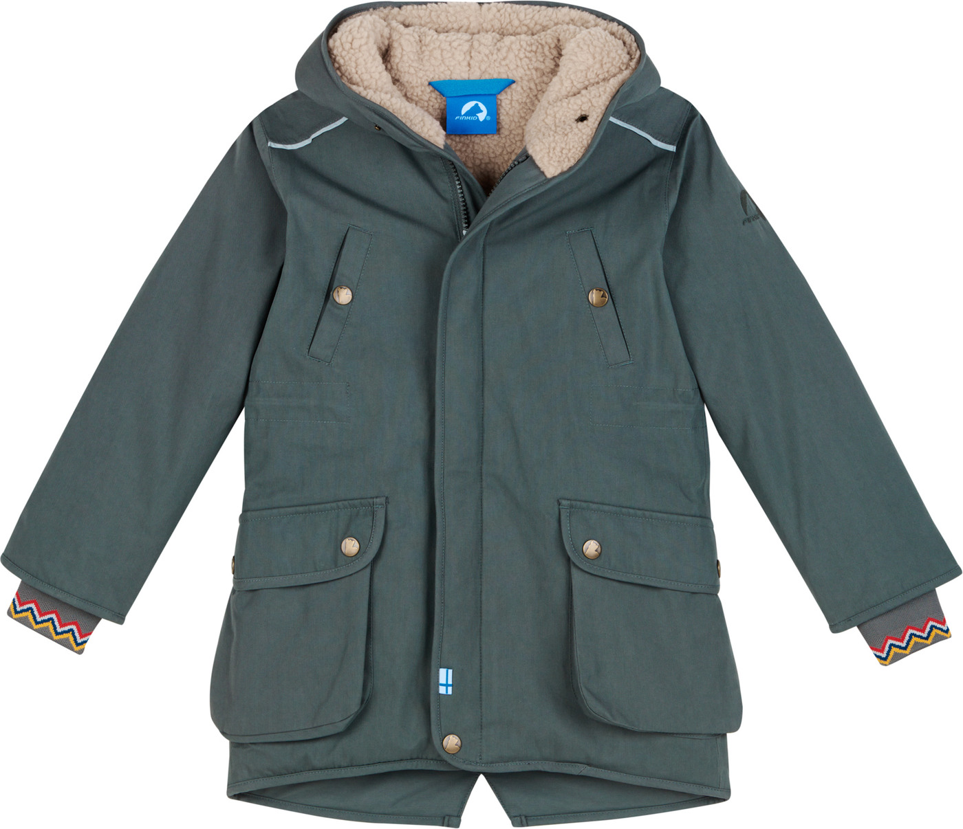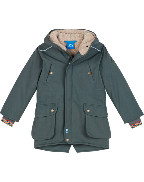 Die verstellbare Taille bietet eine optimale Passform, und ab Größe 122/128 kommt der Parka mit einer modernen, runden Kapuze statt der klassischen Zipfelmütze :)