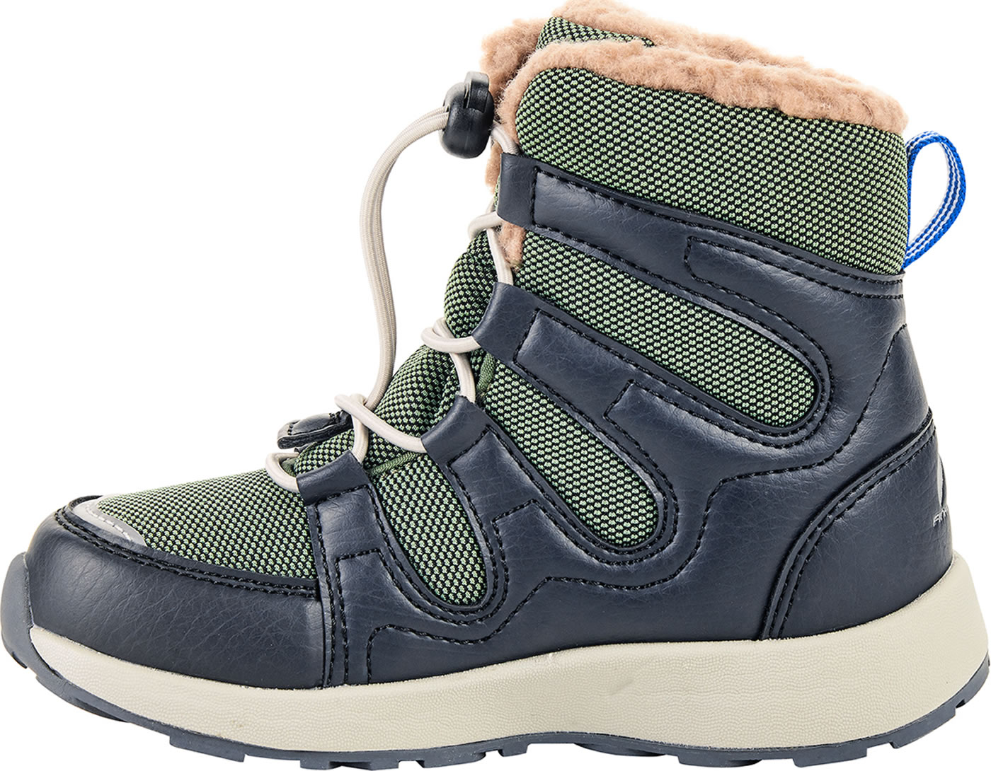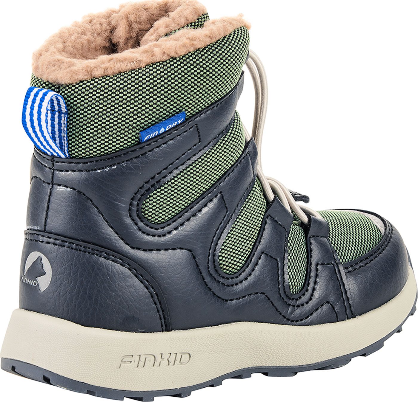 Der Winterstiefel HUIPPU von FINKID ist ein robuster und wasserdichter Stiefel mit Zugverschluss, der beim Rodeln oder in der Schneeballschlacht in seinem Element ist. Der Stiefel ist weich gepolstert und wärmt durch die Fütterung und das Kunstfell am oberen Schaft. Ein besonderer Clou: die herausnehmbaren Innenohlen der Schuhe haben verschiedene Farben. Der linke Fuß steht auf Blau, der rechte auf Rot. So wird das selbstständige Anziehen gefördert und Entenfüße bleiben ausgeschlossen. FINKID EVA Sohlen dämpfen selbst den höchsten Sprung ab.