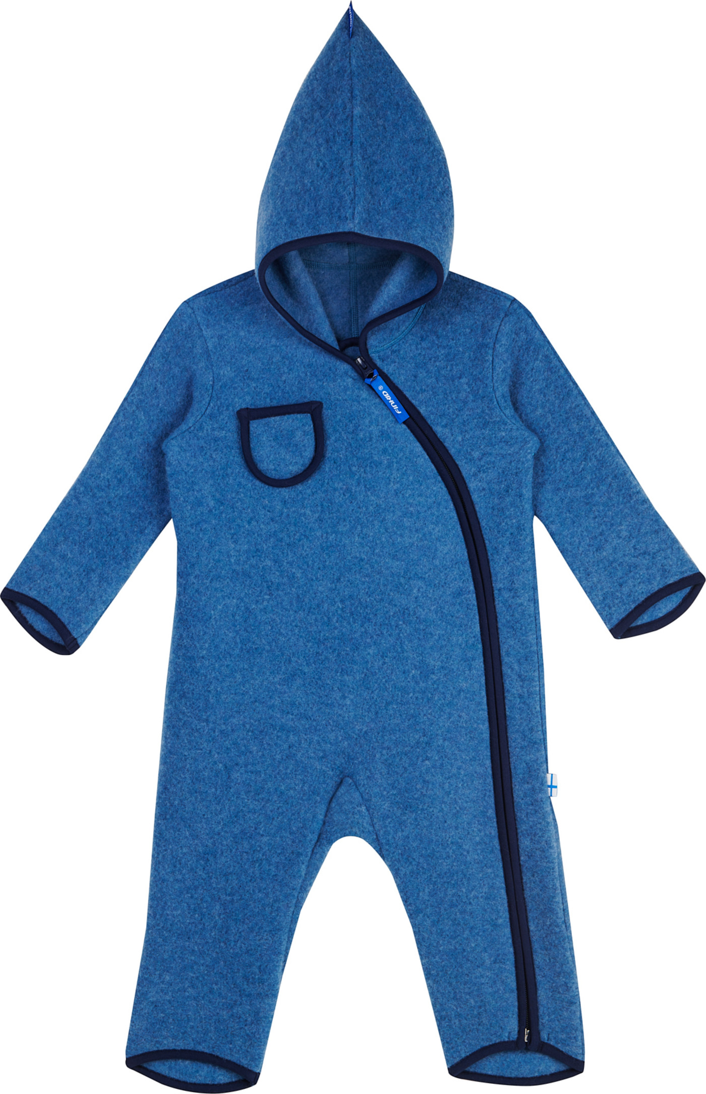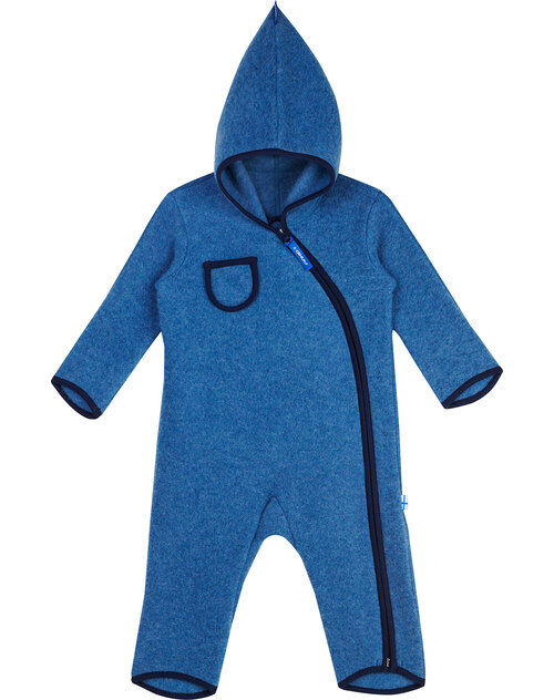Dieser kuschelweiche Wollfleece-Overall mit Zipfelkapuze PUKU WOOL von FINKID ist atmungsaktiv und wärmeisolierend.