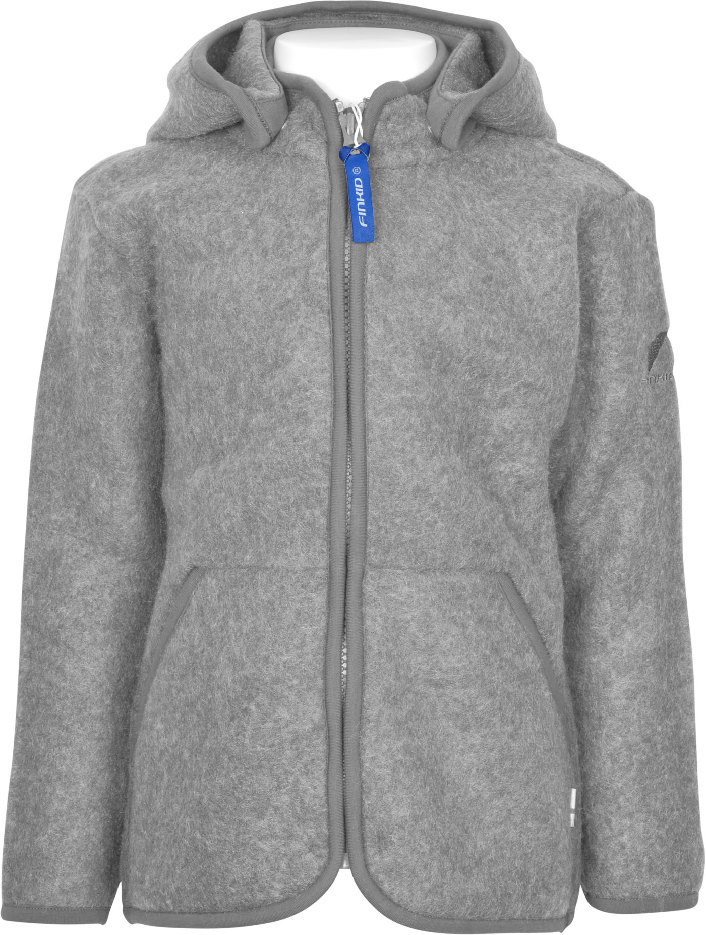 Die kuschelweiche Wollfleece-Jacke Luonto Wool von FINKID hat zwei aufgesetzte Taschen. Die Jacke ist atmungsaktiv und wärmeisolierend. Die Kapuze kann abgeknöpft werden. Die Jacke kann solo getragen werden oder als zusätzlicher Wärmeschutz in eine Outdoor-Jacke eingezippt werden.