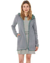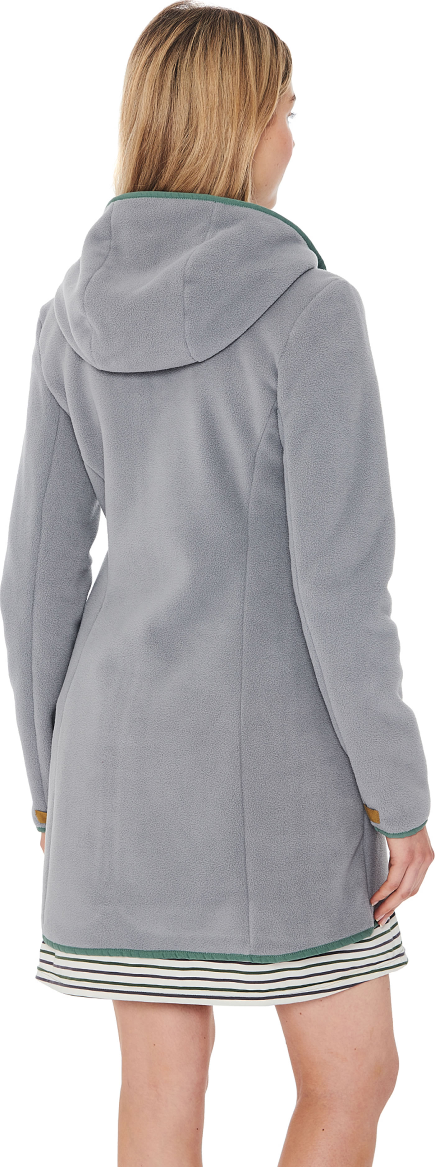 Warm und weich ist die lange SILMU Fleece-Jacke mit Kapuze von FINSIDE für Damen. An kühleren Tagen hält das atmungsaktive, recycelte Polyester-Gewebe auch die Mama auf dem Spielplatz, im Garten oder im Wald zuverlässig warm.
