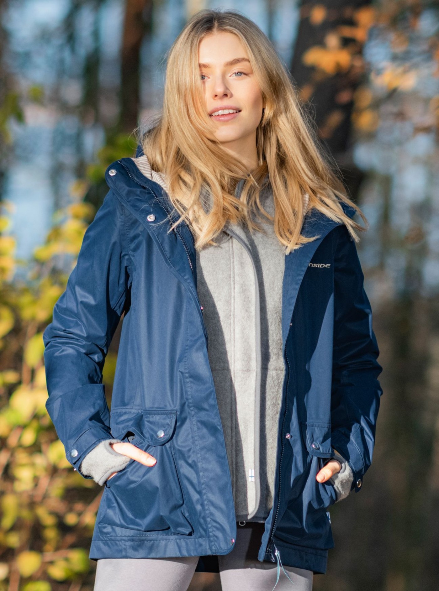 Der mitellange Damen-Parka REKI von FINSIDE passt einfach immer. Winddichte und versiegelte Nähte halten den Träger schön warm an kühlen Tagen. Das atmungsaktive Material aus recyceltem Polyester ist wasserfest sowie Schmutz und Wasser abweisend. Der zeitlose Parka ist ein toller Begleiter für den Herbst. Die großen Taschen auf der Vorderseite bieten viel Platz für Schlüssel, Handy etc. Der Parka hat große Kapuze und ein in Kontrastfarben gestreiftes Innenfutter. Die Jacke kann solo getragen werden oder mit der Zip In Jacke JUULIA kombiniert werden.