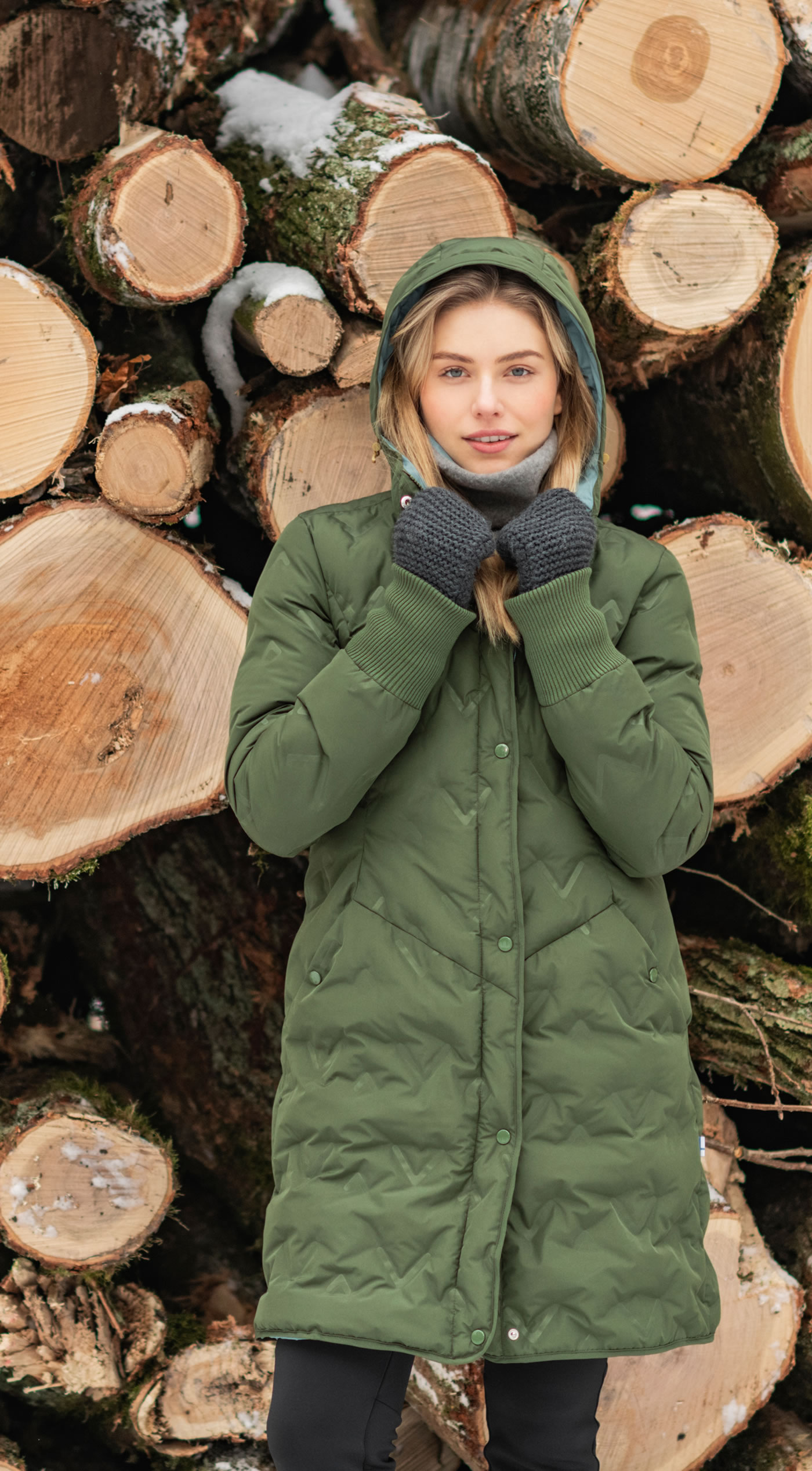 Wasserfeste und Winddichte Damen-Winterjacke JUOLUKKA aus Wasserfestquilt mit tailliertem Schnitt von FINSIDE. Große Taschen mit Druckknöpfen bieten viel Platz. Der Reißverschluss wird durch eine Druckknopfleiste verdeckt. Praktisch ist die große Kapuze mit Tunnelzug: sie lässt sich dank Druckknöpfen in der Höhe verstellen, um den Kopf optimal angepasst warm und trocken zu halten. In einer Kontrastfarbe ist das Futter der wärmeisolierenden Winterjacke gearbeitet. Die langen und weichen Ärmelbündchen sorgen für hohen Tragekomfort.