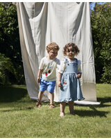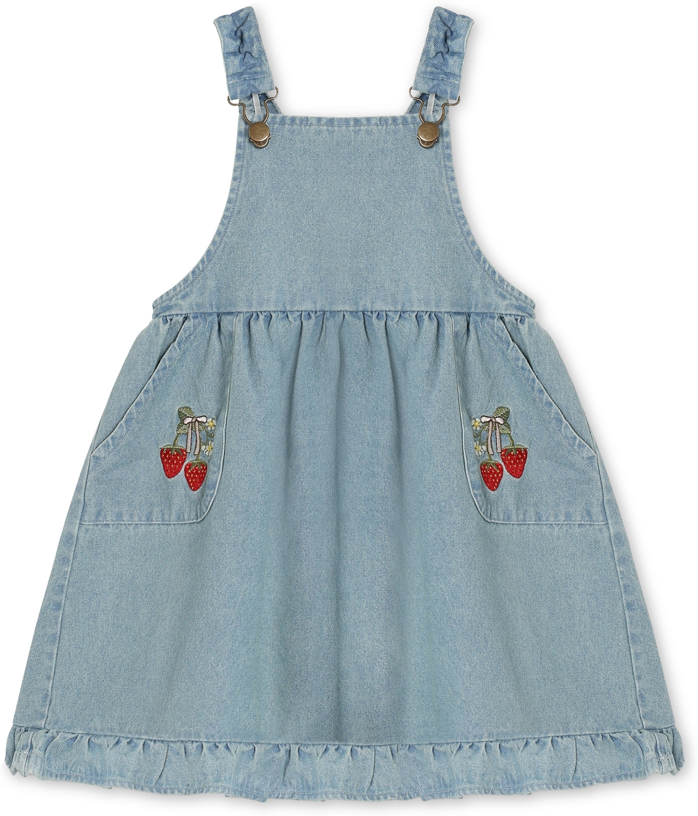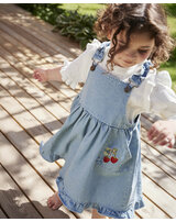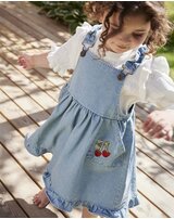 Fliink Latz-Jeanskleid aus 100% Baumwolle mit Erdbeeren - Light Denim Blue