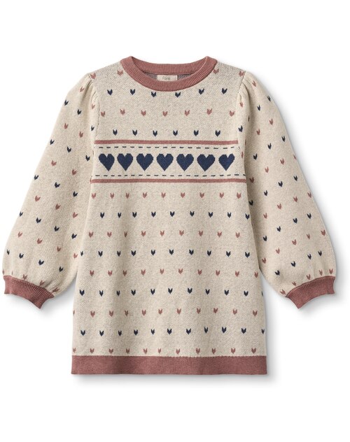 Fliink Strick-Kleid 'Nova' aus Wolle und Baumwolle mit Herz-Details - Sandshell