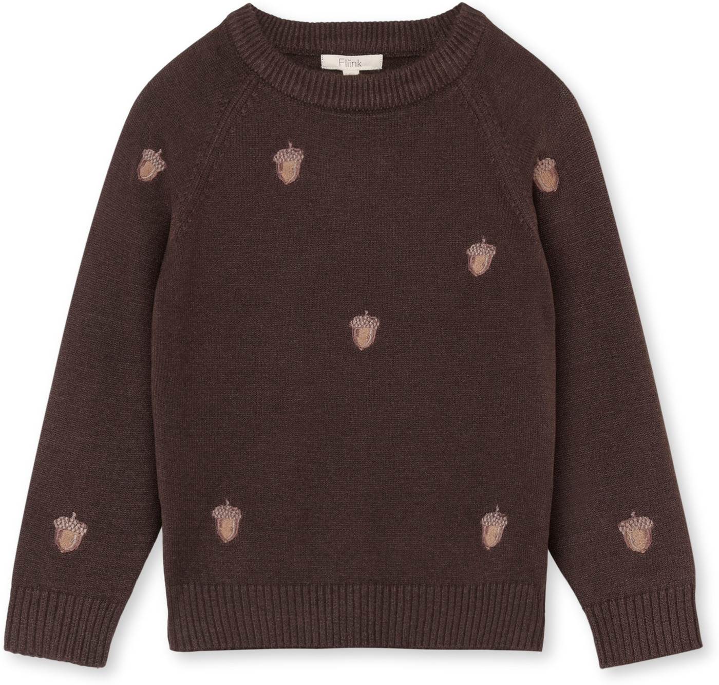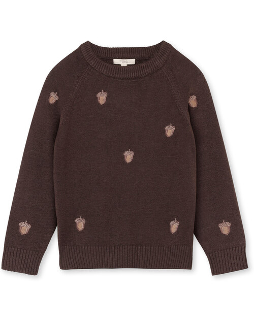 Fliink Strick-Pullover 'Benna' aus 50% Viskose mit aufgestickten Eicheln - Coffee Bean