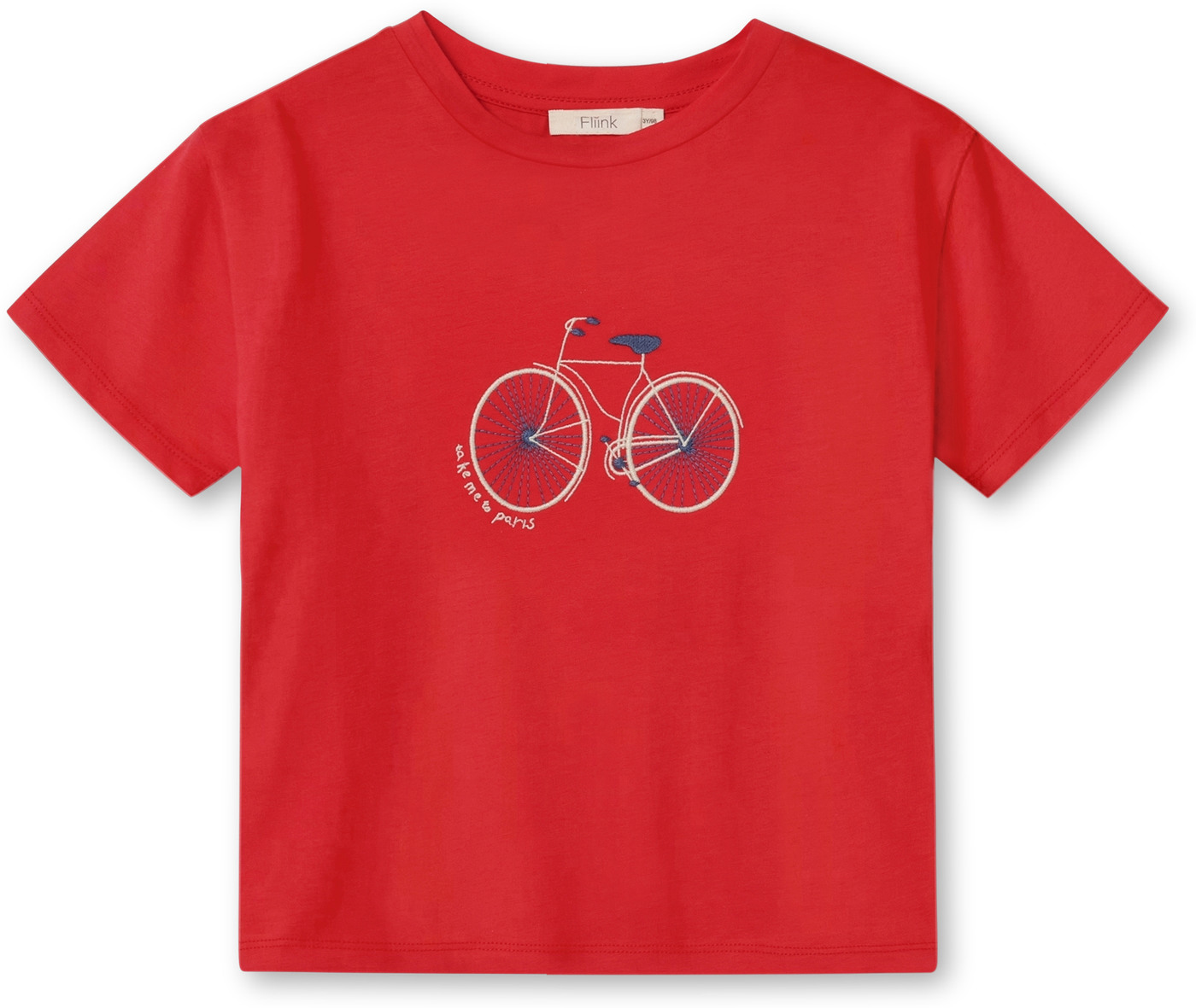 Fliink T-Shirt Kurzarm BIKE mit Stickerei aus Baumwolle - Pompeian Red