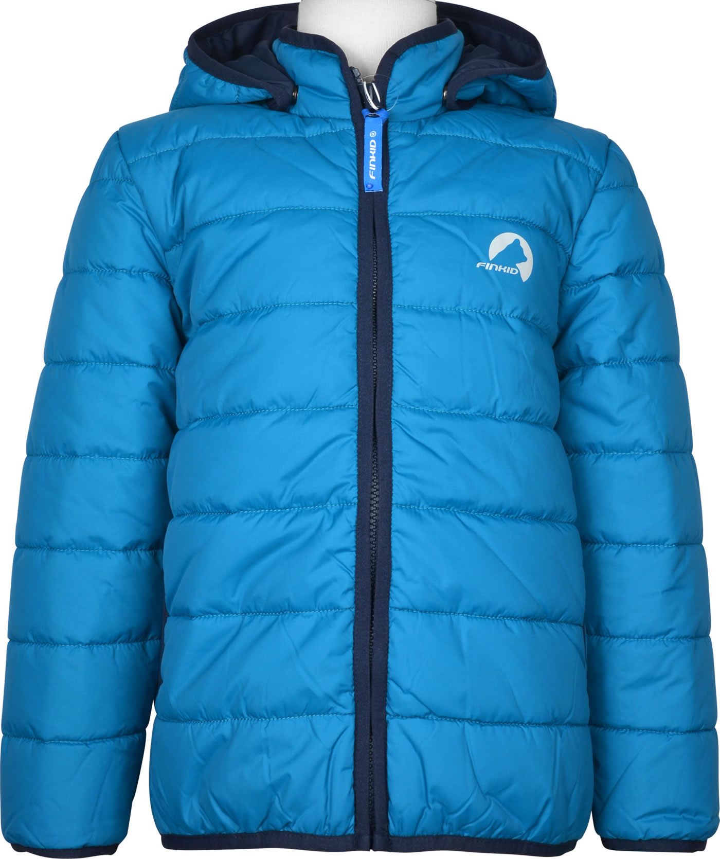 La veste légère VANUKAS de FINKID est une veste matelassée qui peut être portée seule ou zippée dans une veste d'extérieur. Il a une fermeture éclair et deux poches avant. La capuche est amovible.