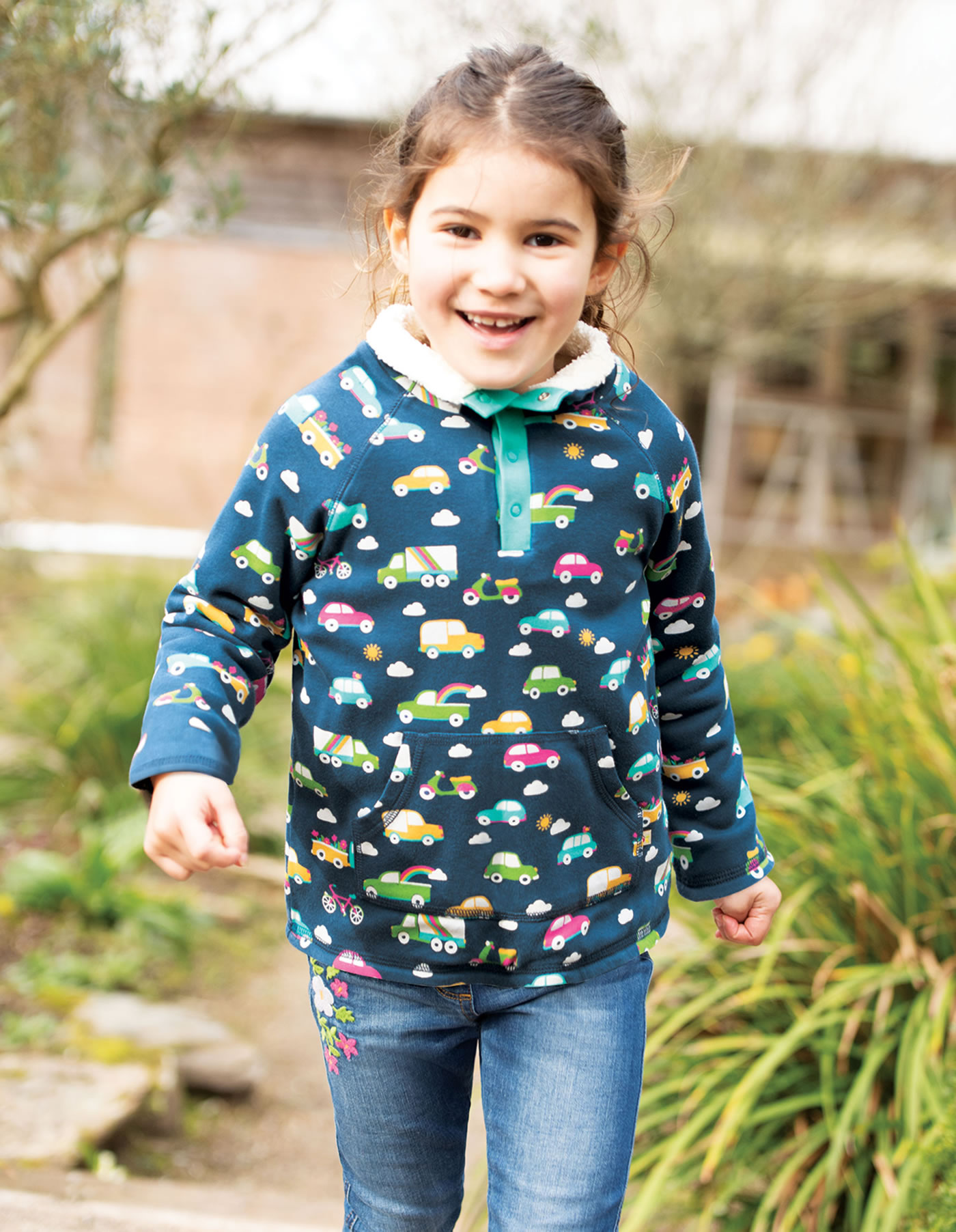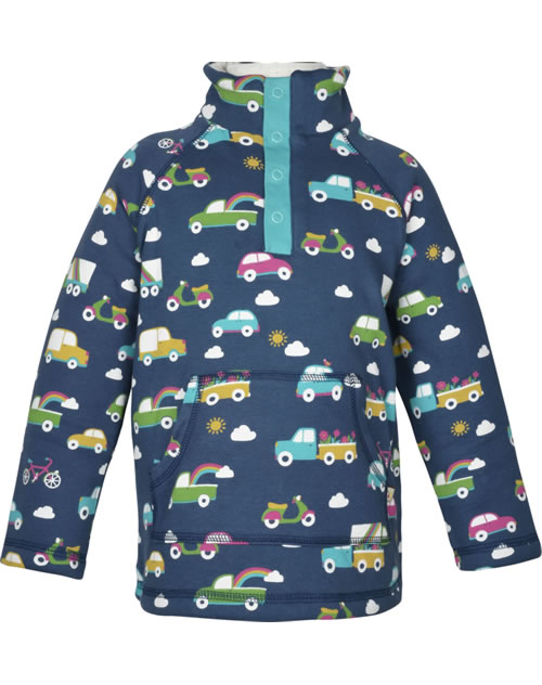 Frugi Snuggle Fleece RAINBOW ROADS space blue