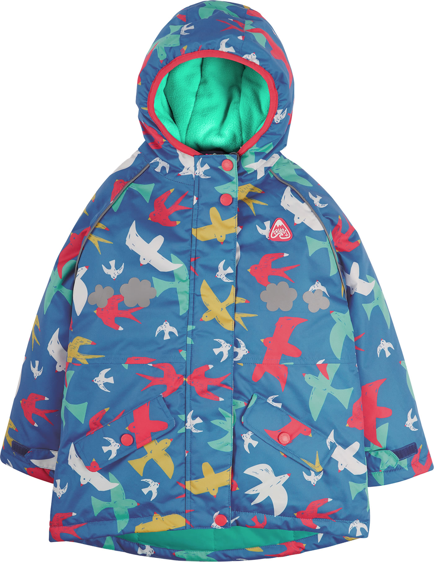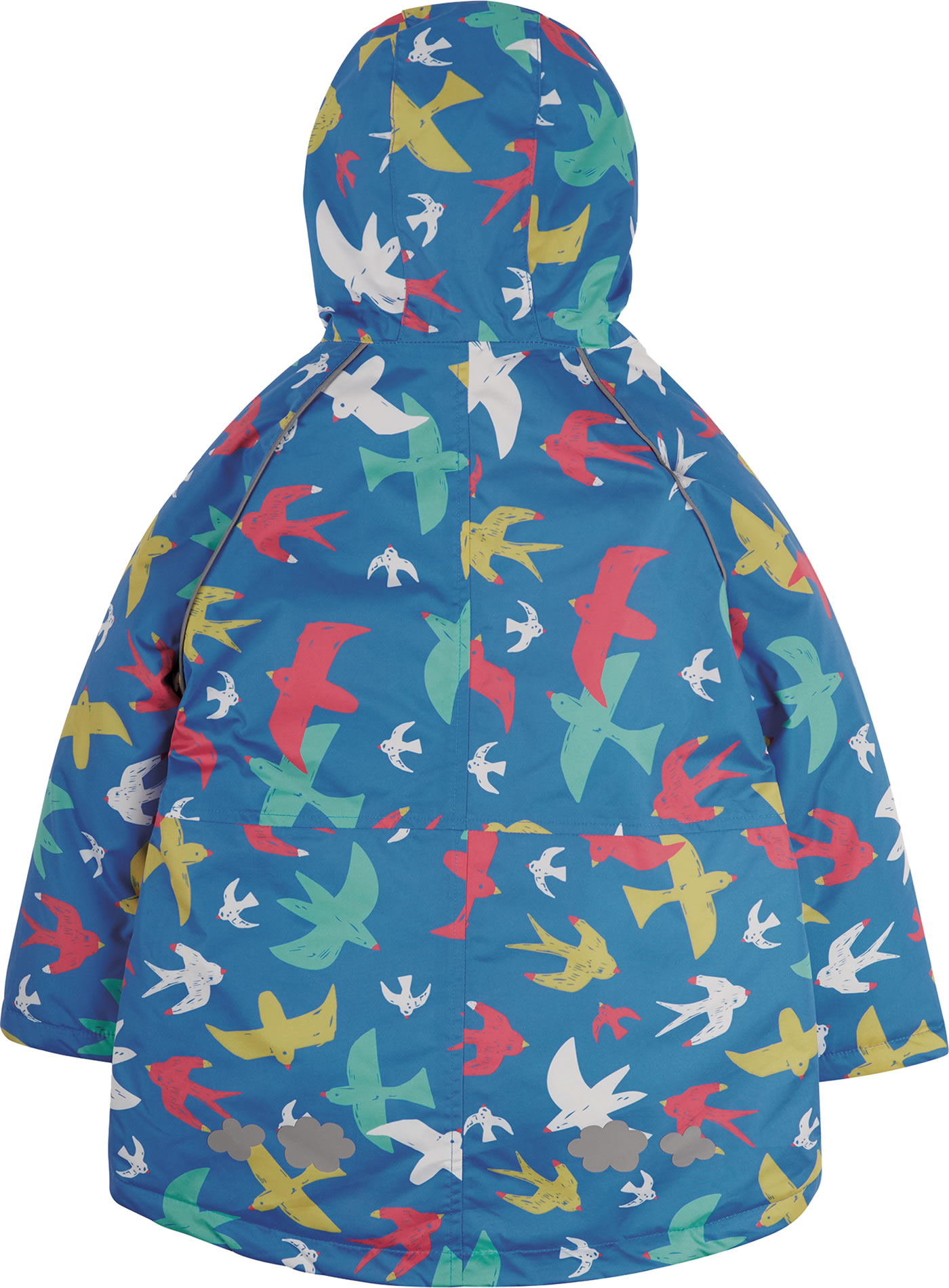 Top-Frugi-Qualität. Super Jacke für den Übergang. Hält auch Regengüssen Stand. Kaputze ist vorne etwas kurz - ein Schild wäre prima.